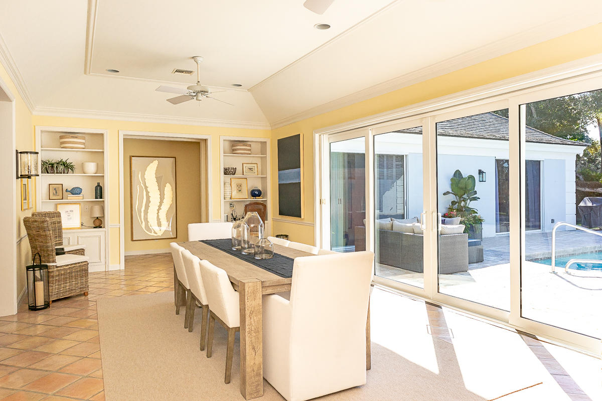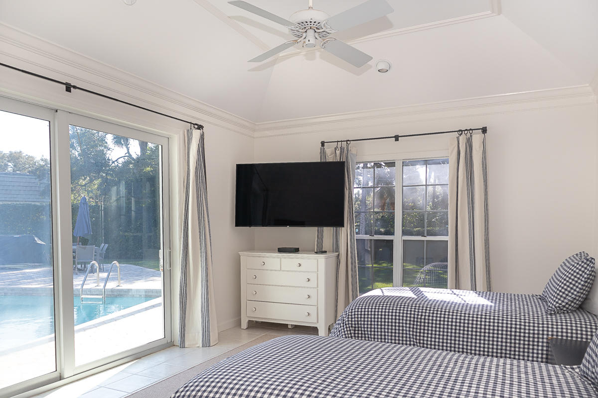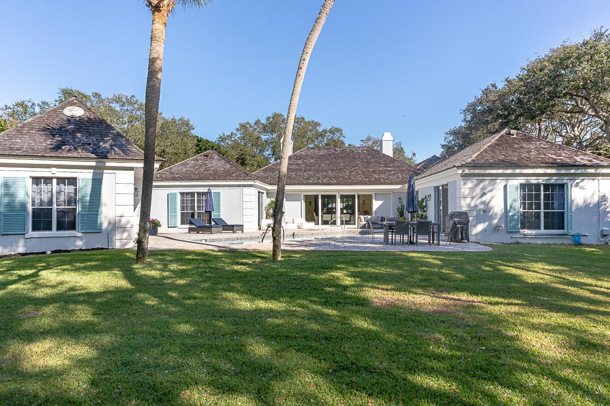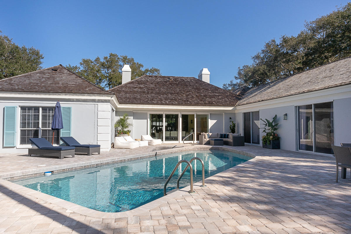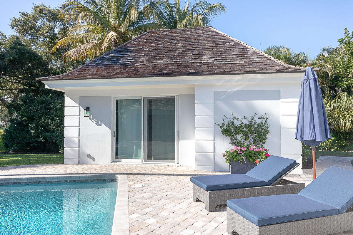 Located in the heart of John's Island, on a coveted private street within a short walk to all Club amenities, is this beautiful 4BR/4.5BA residence. Sited on a .56 acre lot, enjoy the convenience of a central location, brilliant sunsets, and picturesque, multiple fairway and lake views of the South Course. Boasting 5,211 GSF, all principal rooms open onto the poolside terrace. The gracious living room with fireplace adjoins the lanai, creating one cohesive living space. Additional features include updated bathrooms, new roof, high ceilings, bright interiors, custom built-ins, island kitchen with custom cabinetry, family room, spacious master suite with updated bathroom and large walk-in closet, guest bedrooms with full baths, and a detached 1BR/1BA cabana with kitchenette.