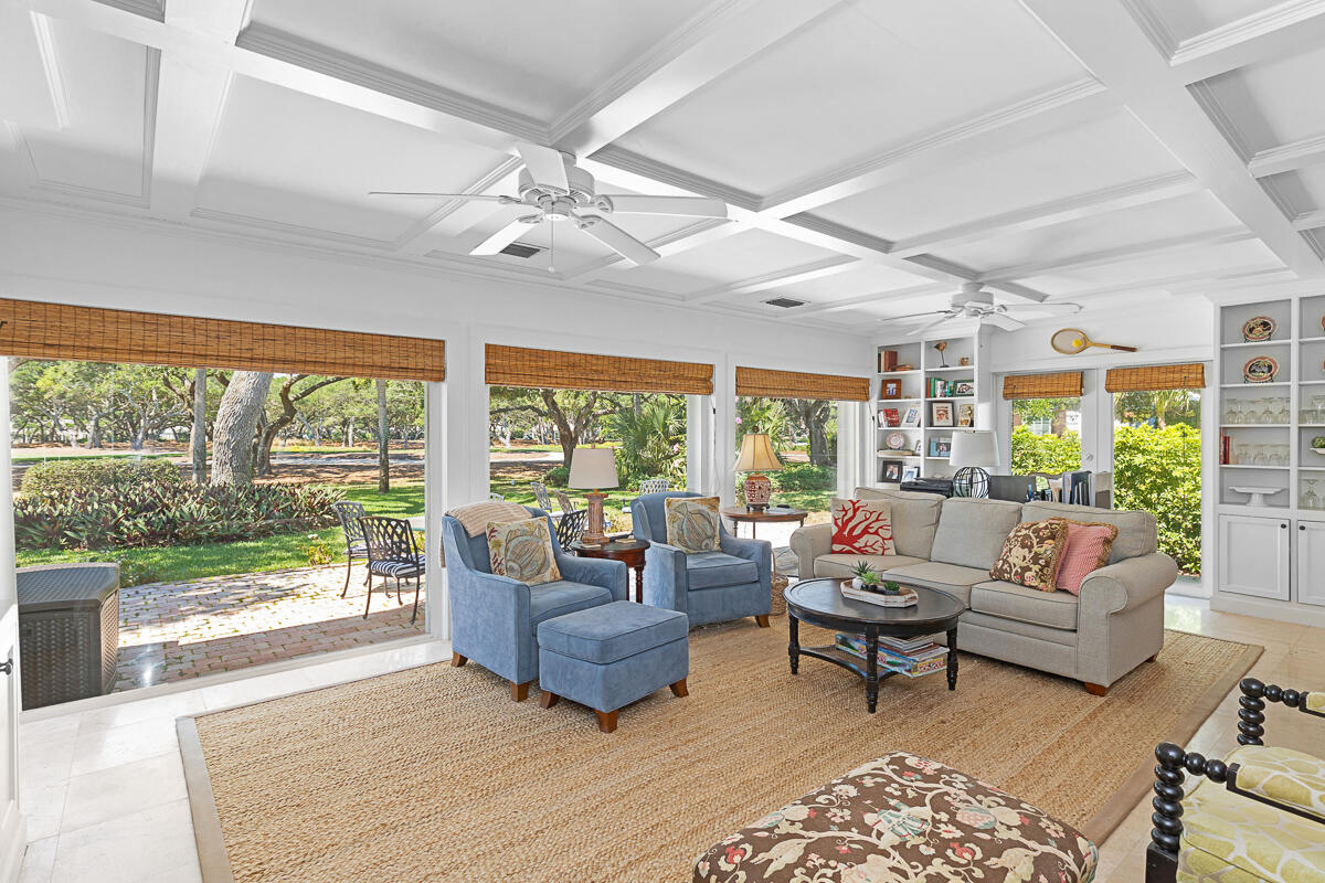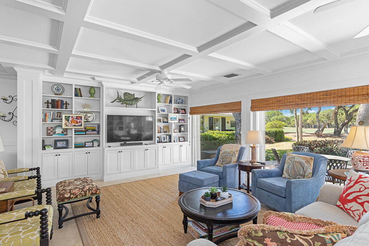 [26]Conveniently located near all Club facilities and main entrance is this exquisitely renovated 3BR/2BA golf cottage overlooking multiple fairways of the South Course. Custom millwork, architectural detailing and luxurious finishes enhance the beautifully decorated 1,900 SF residence. Features include a gourmet island kitchen opening onto the living room and generous lanai, two guest bedrooms, large master suite and walk-in closet with washer/dryer.