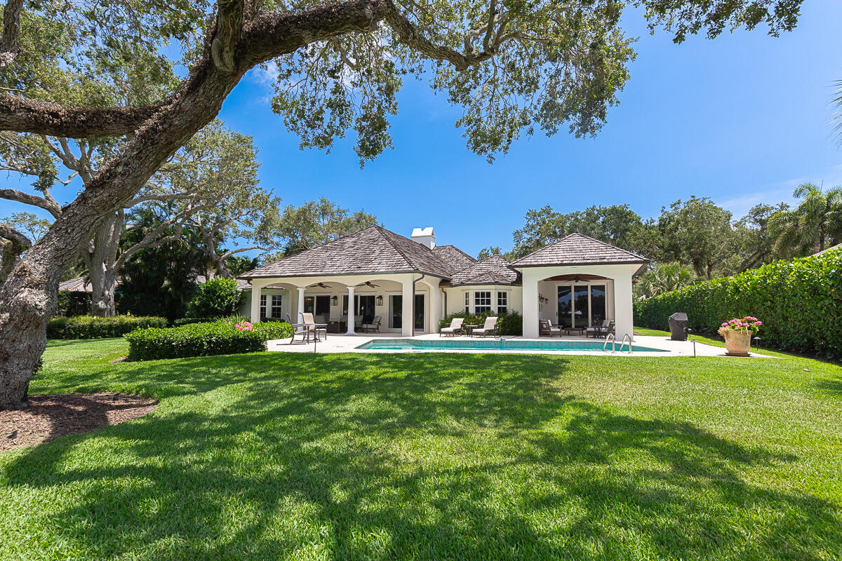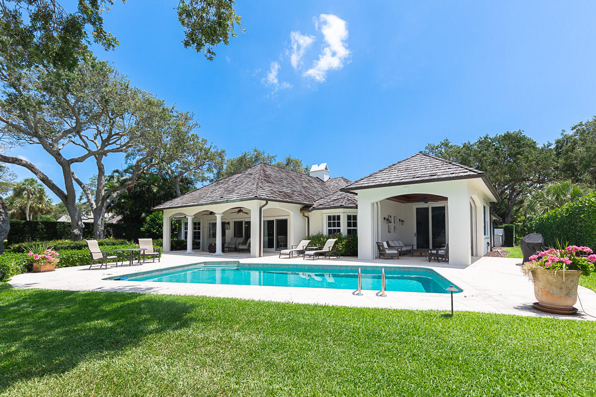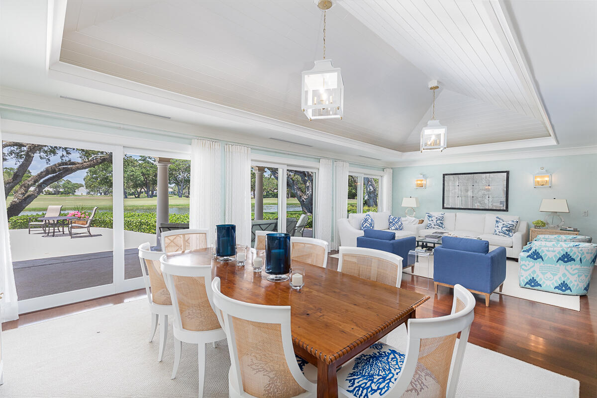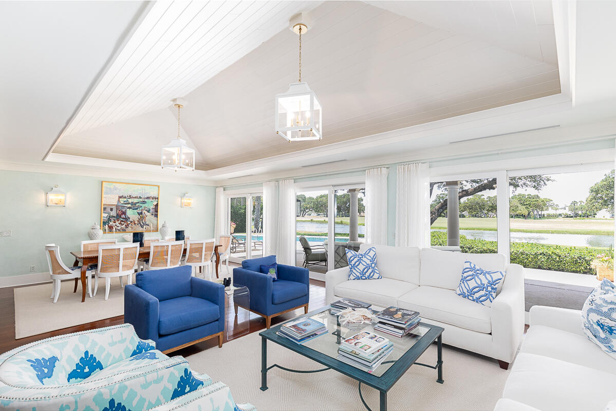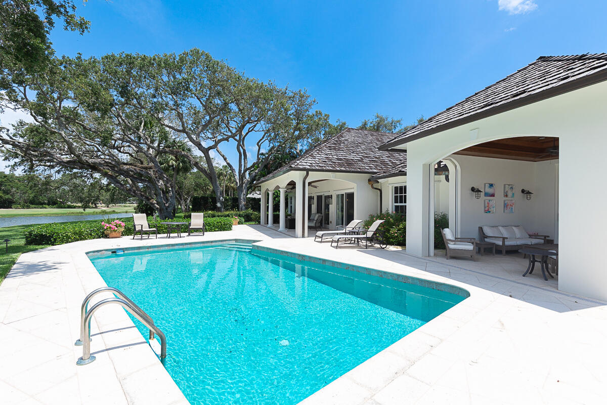 A quiet street nestled underneath lush foliage unveils this 4BR/4BA home located in the heart of John’s Island. A wonderful family retreat, this recently renovated haven combines an ideal location and a comfortable floor plan with wonderful flow overlooking a private pool with stunning multiple fairways, and water views of the South Course. Enter to a grand living room with room for dining, and egress to the covered veranda that overlooks the pool. Principal rooms delight in serene views while maintaining bright and airy interiors. The master suite boasts dual vanities, while guest en suites provide ample accommodations. A gourmet kitchen with custom cabinetry and a breakfast area adjoins both a family room and outdoor patio with an awning well suited for relaxing or entertainment. Completed by a 2-car garage, this home is an ideal stay for all.
