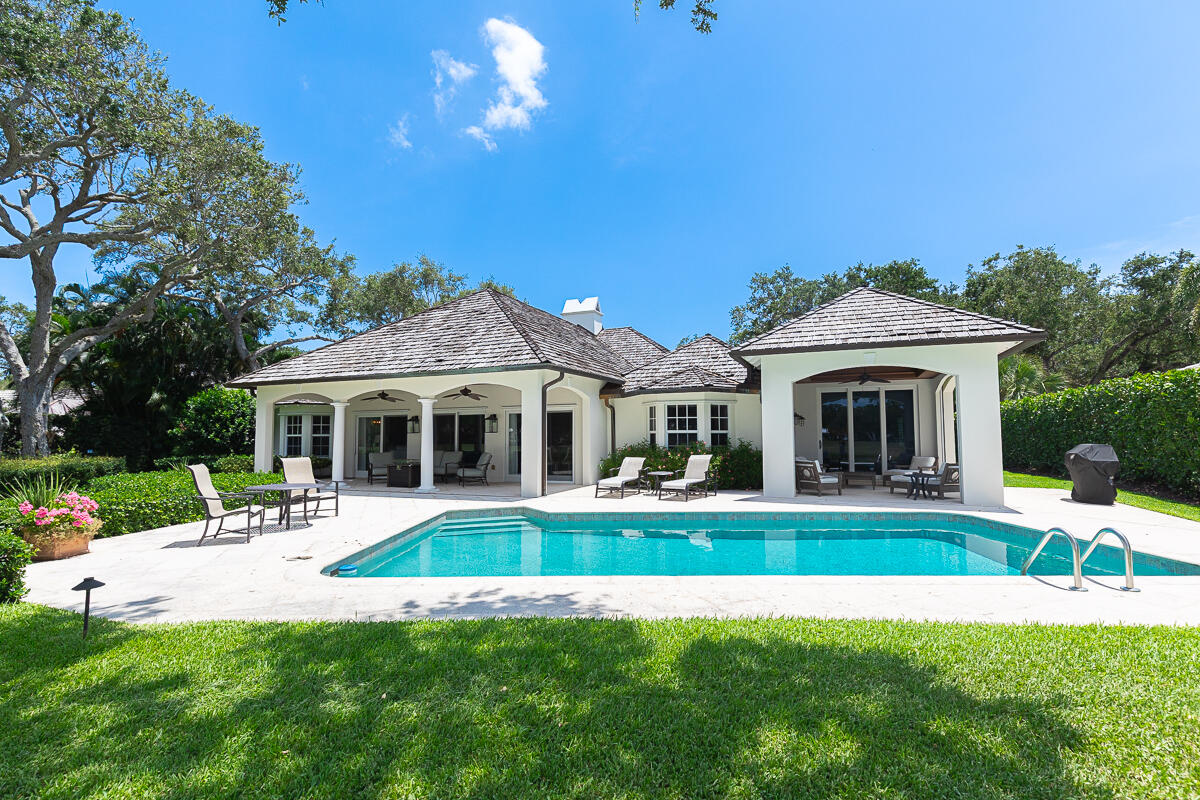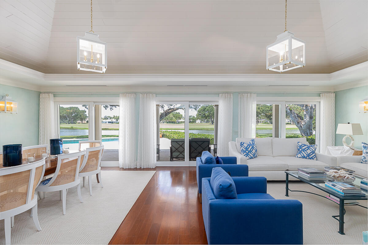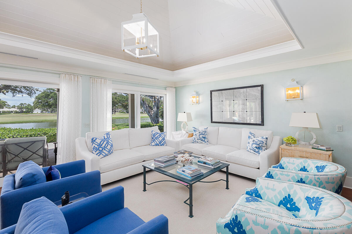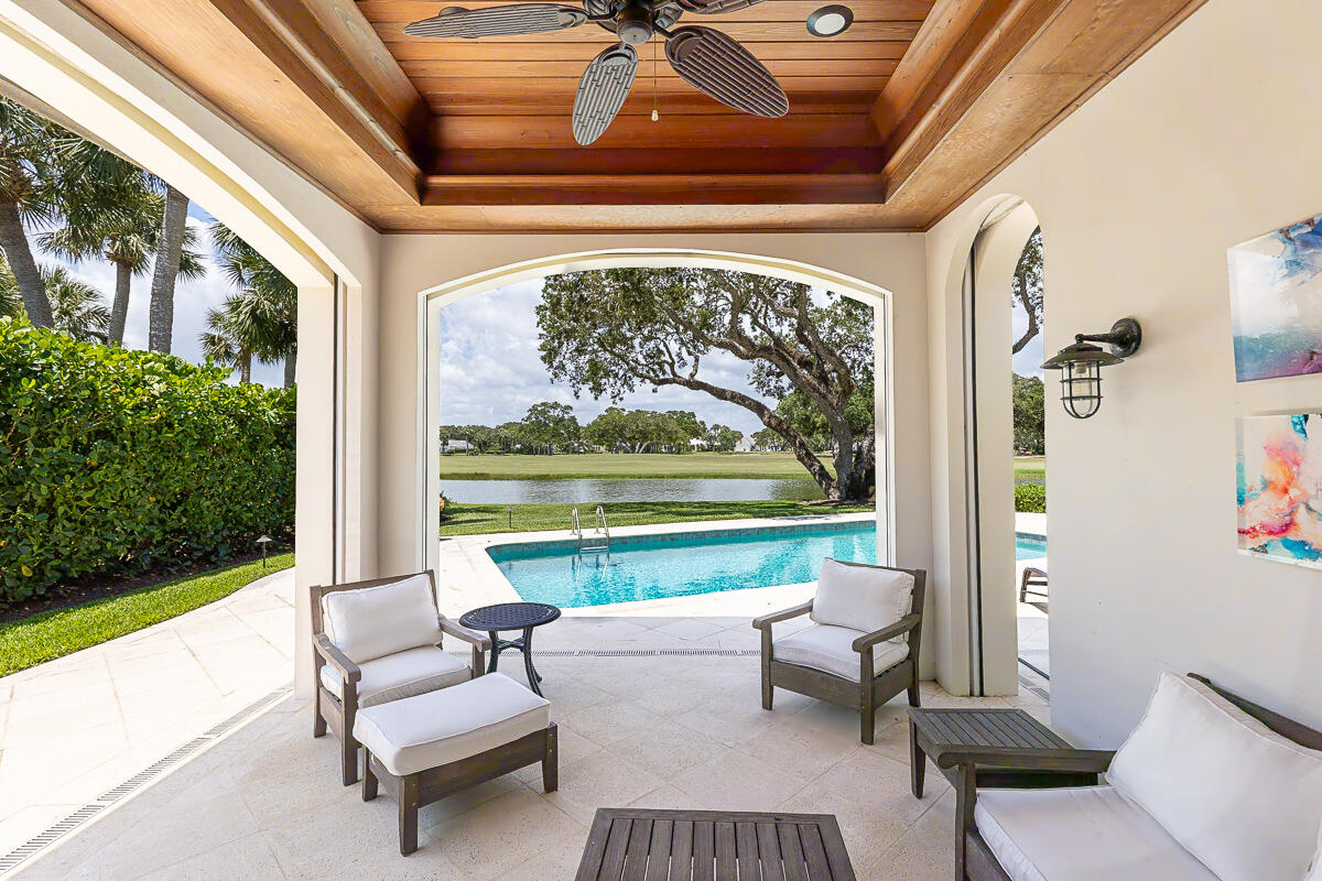 A quiet street nestled underneath lush foliage unveils this 4BR/4BA home located in the heart of John’s Island. A wonderful family retreat, this recently renovated haven combines an ideal location and a comfortable floor plan with wonderful flow overlooking a private pool with stunning multiple fairways, and water views of the South Course. Enter to a grand living room with room for dining, and egress to the covered veranda that overlooks the pool. Principal rooms delight in serene views while maintaining bright and airy interiors. The master suite boasts dual vanities, while guest en suites provide ample accommodations. A gourmet kitchen with custom cabinetry and a breakfast area adjoins both a family room and outdoor patio with an awning well suited for relaxing or entertainment. Completed by a 2-car garage, this home is an ideal stay for all.