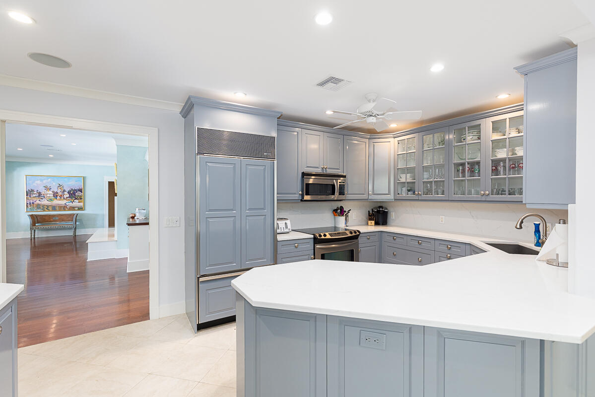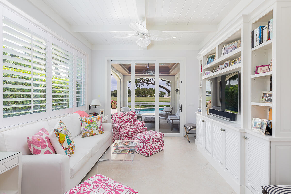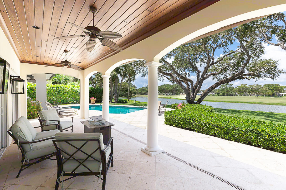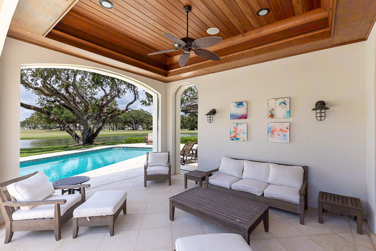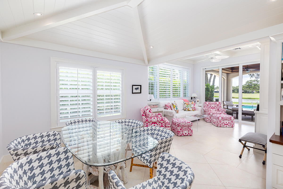 A quiet street nestled underneath lush foliage unveils this 4BR/4BA home located in the heart of John’s Island. A wonderful family retreat, this recently renovated haven combines an ideal location and a comfortable floor plan with wonderful flow overlooking a private pool with stunning multiple fairways, and water views of the South Course. Enter to a grand living room with room for dining, and egress to the covered veranda that overlooks the pool. Principal rooms delight in serene views while maintaining bright and airy interiors. The master suite boasts dual vanities, while guest en suites provide ample accommodations. A gourmet kitchen with custom cabinetry and a breakfast area adjoins both a family room and outdoor patio with an awning well suited for relaxing or entertainment. Completed by a 2-car garage, this home is an ideal stay for all.