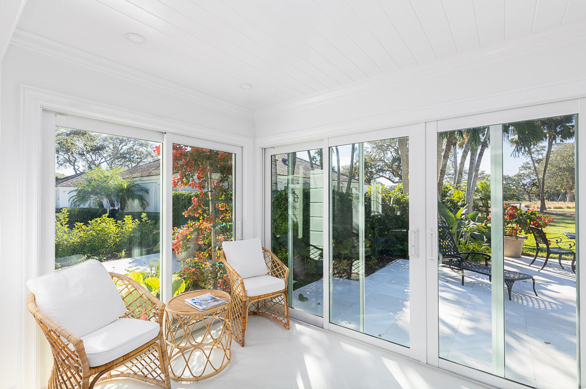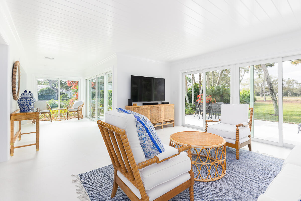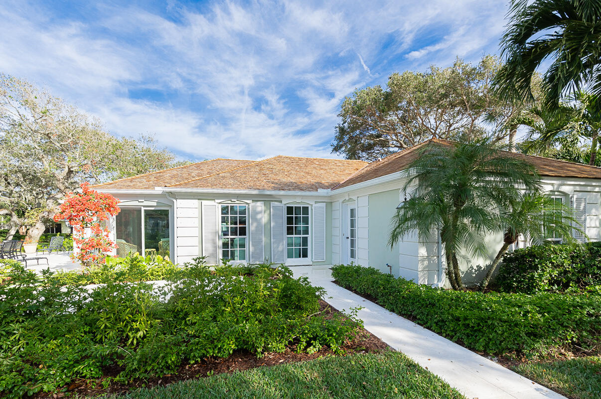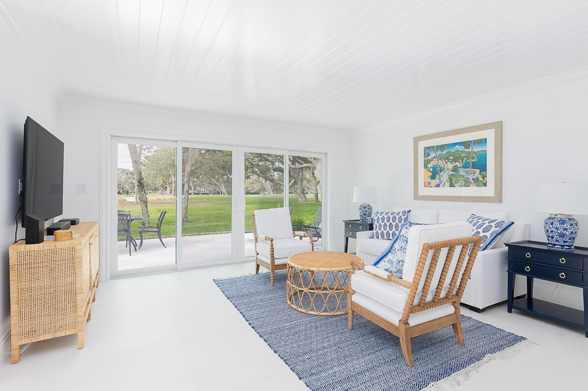 Conveniently near the South Gate, delight in watercolor sunsets over multiple South Course fairway views in this alluring renovated 2BR plus Bunkroom/2BA golf cottage. Set amongst lush landscaping, the bright and airy retreat offers a spacious 1,600 SF with beautiful appointments such as custom built-ins in the master suite and also in the main living area. Grill out or relax with a good book on the shaded, side patio or indulge in golf spectating from a generous enclosed lanai with panoramic views.