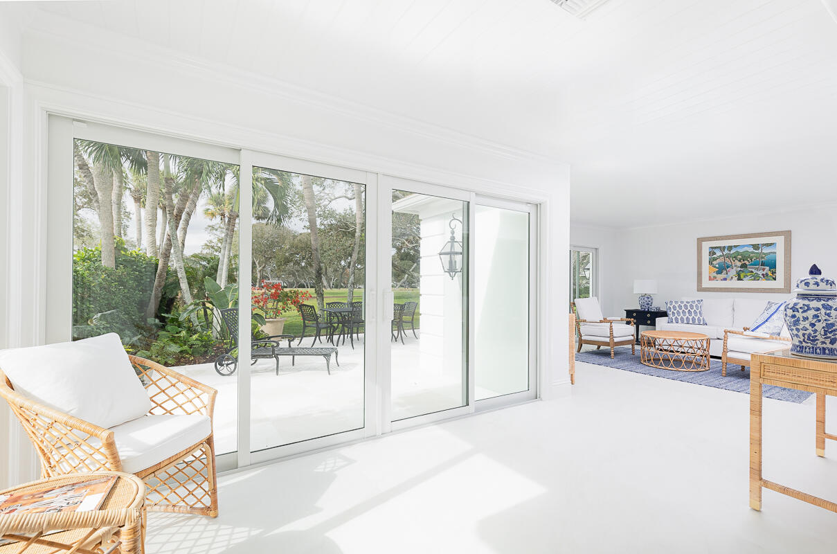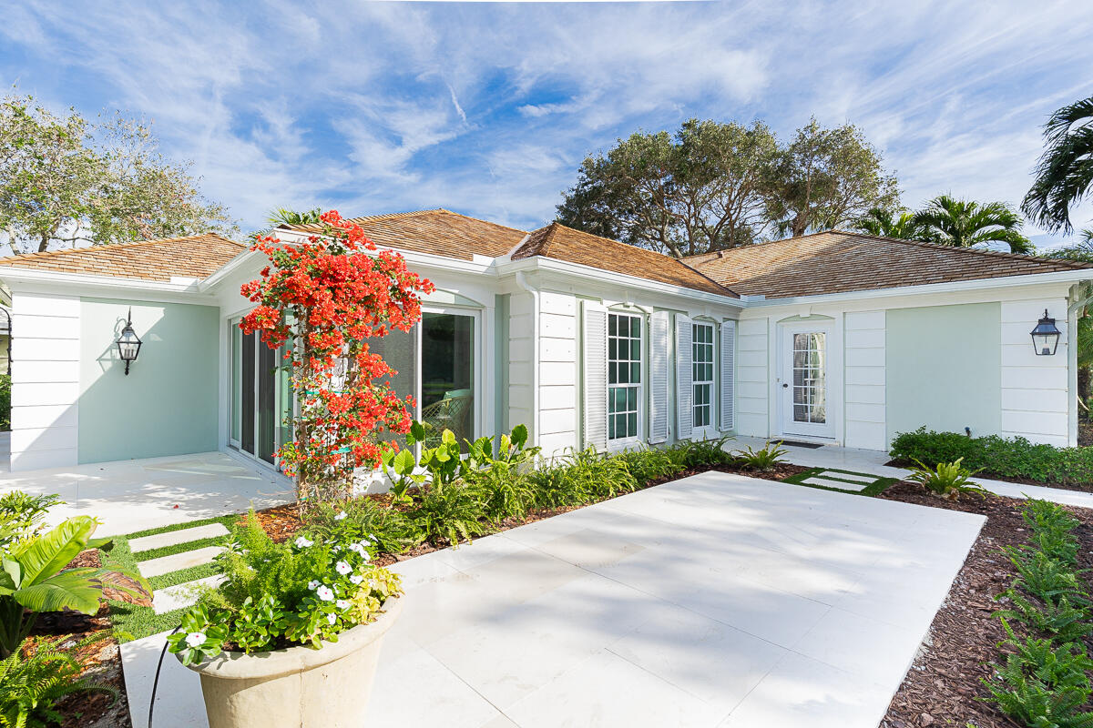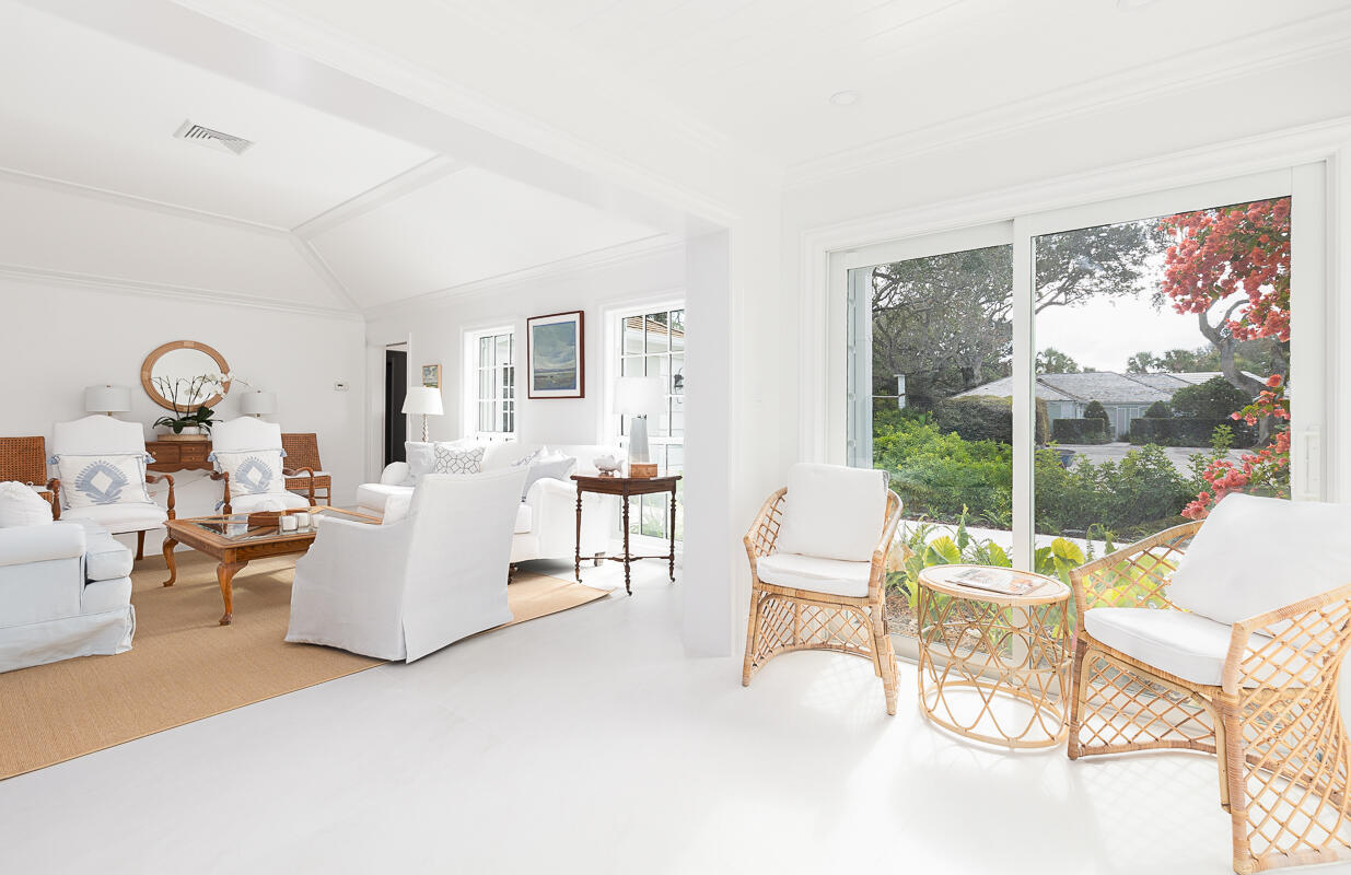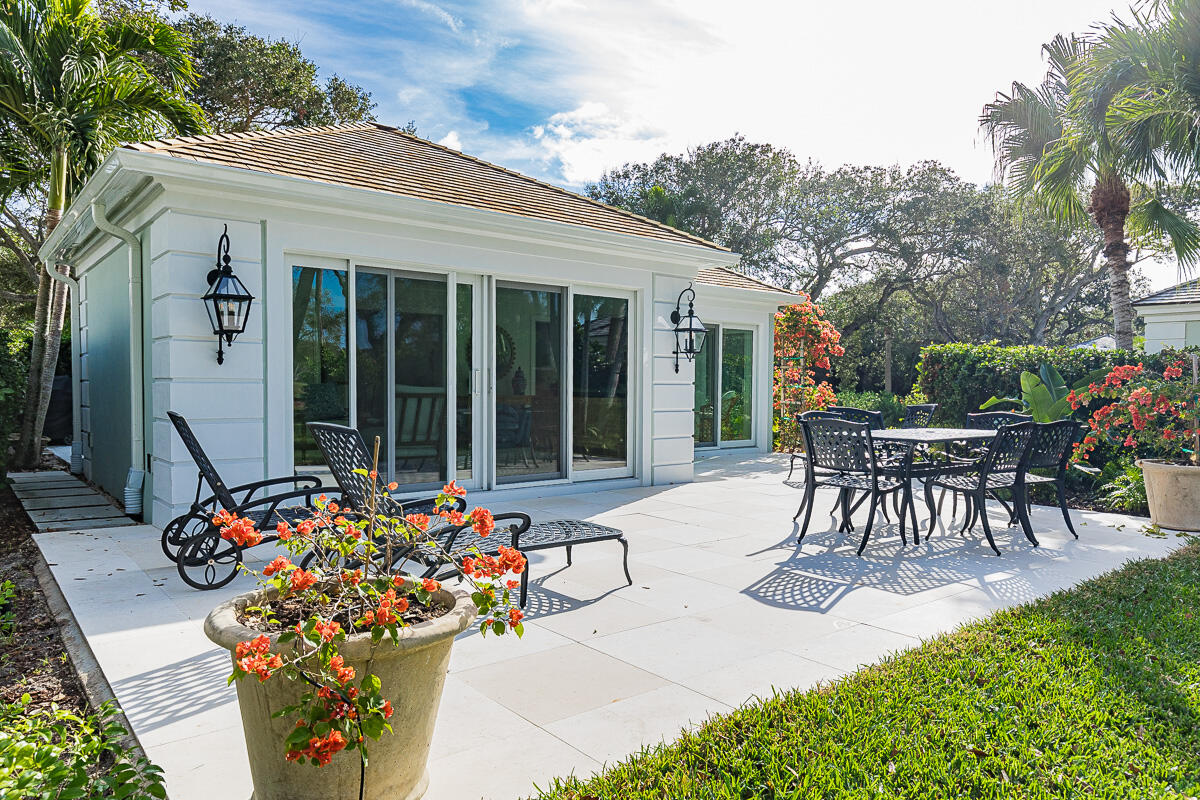 Conveniently near the South Gate, delight in watercolor sunsets over multiple South Course fairway views in this alluring renovated 2BR plus Bunkroom/2BA golf cottage. Set amongst lush landscaping, the bright and airy retreat offers a spacious 1,600 SF with beautiful appointments such as custom built-ins in the master suite and also in the main living area. Grill out or relax with a good book on the shaded, side patio or indulge in golf spectating from a generous enclosed lanai with panoramic views.
