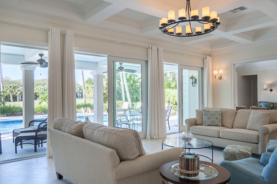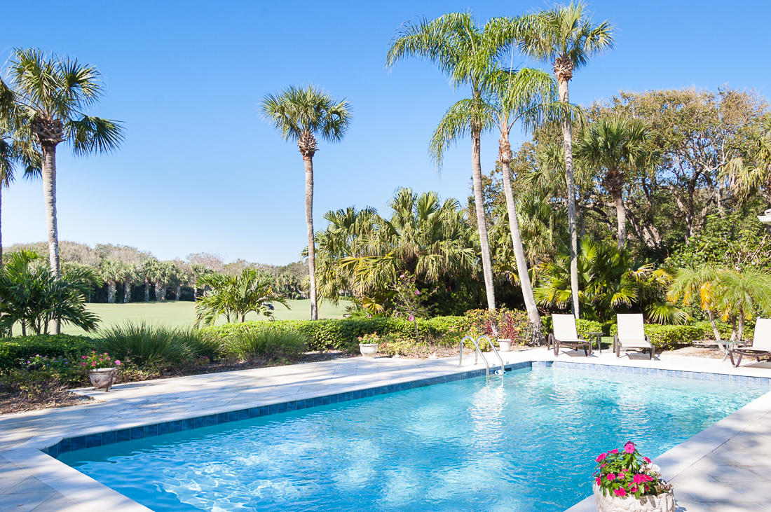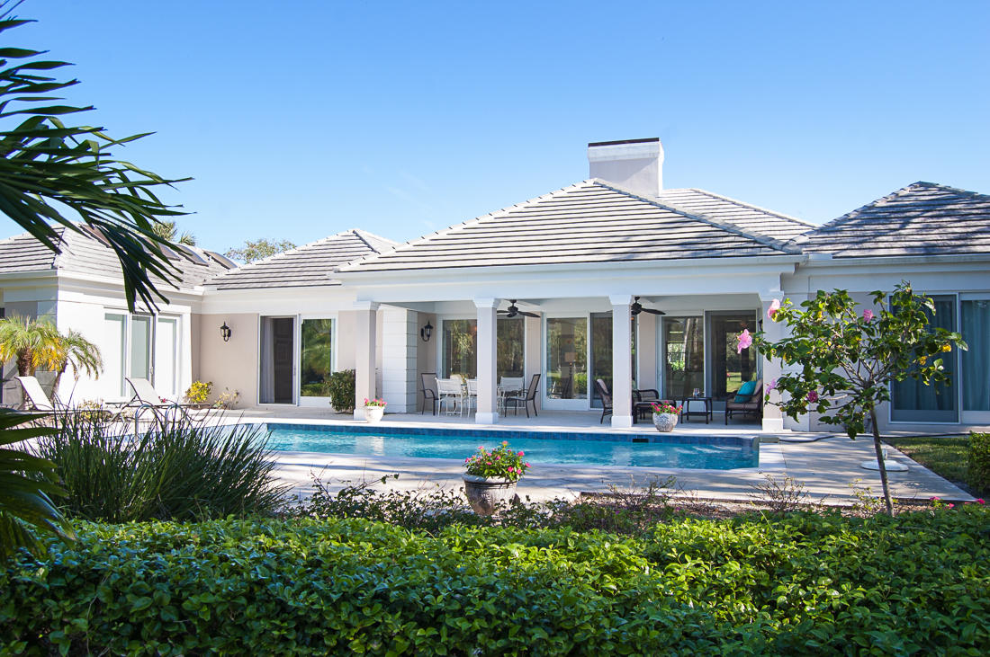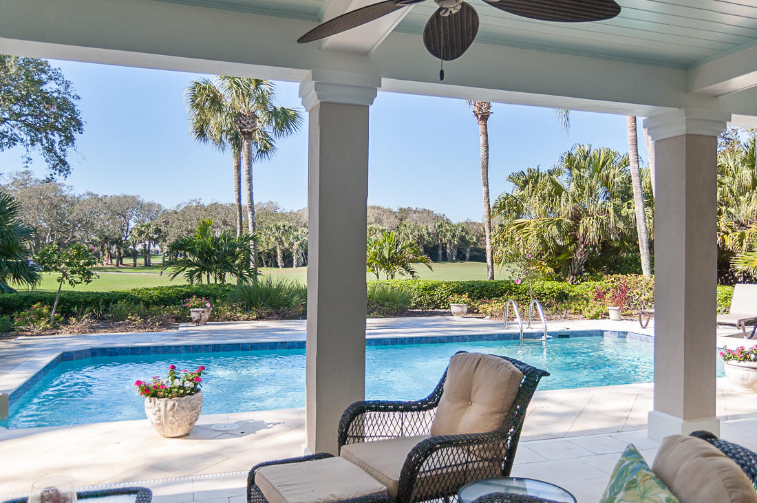 Sited along the 1st fairway of the North Course, conveniently within walking distance to all Club amenities, is this exceptionally renovated 4BR+Den/4BA residence. Quality construction and attention to detail are evident throughout this bright and airy 4,365 SF retreat. Enjoy beautiful pool and golf views from the expansive living room with coffered ceiling and fireplace as well as the den with custom built-ins. The gourmet kitchen is a chef's delight with stainless steel appliances and sufficient countertop dining. Additional features include marble floors, luxurious bathrooms including a master glass enclosed walk-in shower and marble double vanity, spacious bedrooms, wine bar, large laundry room with sink, and 2-car garage.