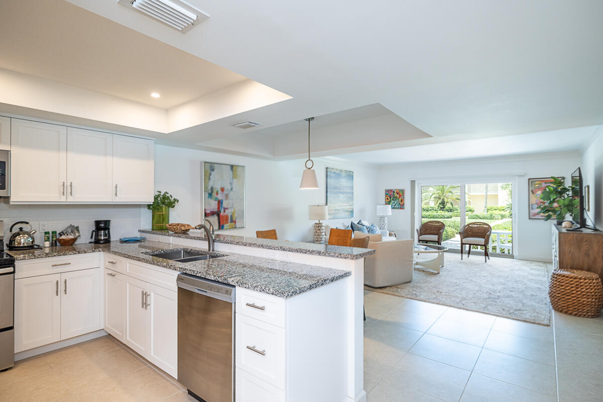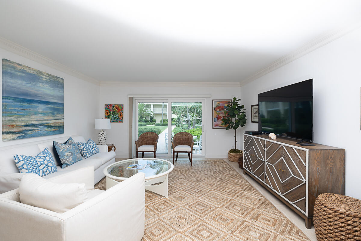 This unique and beautiful two bedroom apartment with a fully equipped kitchen and expansive living area offers the perfect opportunity for a relaxing getaway. It is ideally located in a tropical garden courtyard with an extensive patio and easy access to a large heated pool. Great for dining outside and sitting poolside just steps from your apartment. Delight in the convenience of a fully-equipped, full size and modern kitchen for preparation of meals and relax in an attractive living room with views of the tropical garden. Bright sunshine comes in through large sliding glass doors to both the master bedroom and living room. The master suite is gracious with a king size bed. The second bedroom offers complete privacy and has a queen size bed. Other conveniences include a beautiful bathroom, ample closet space and a laundry room.