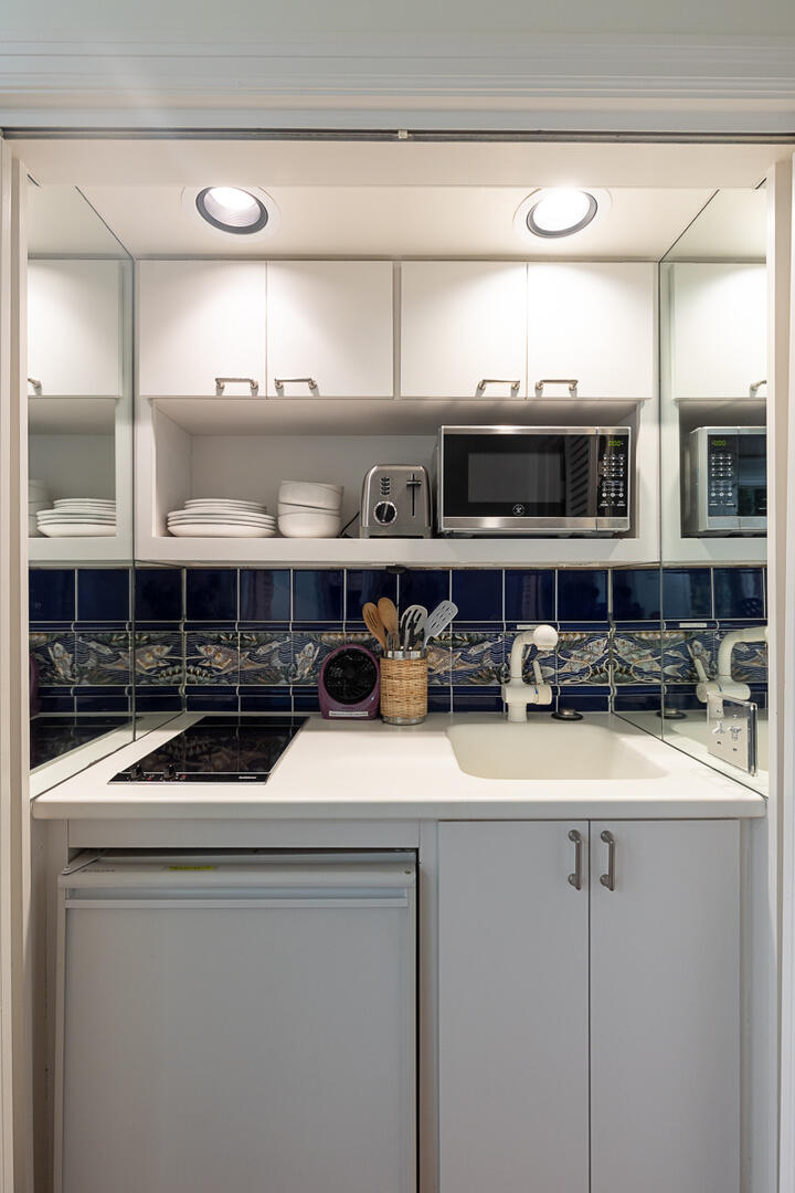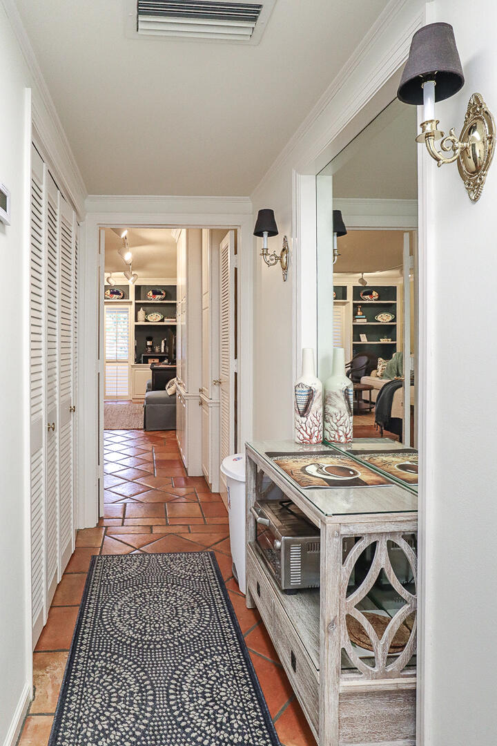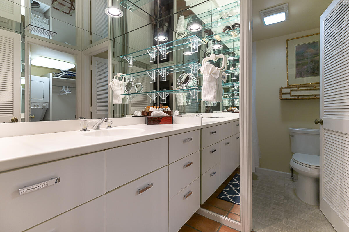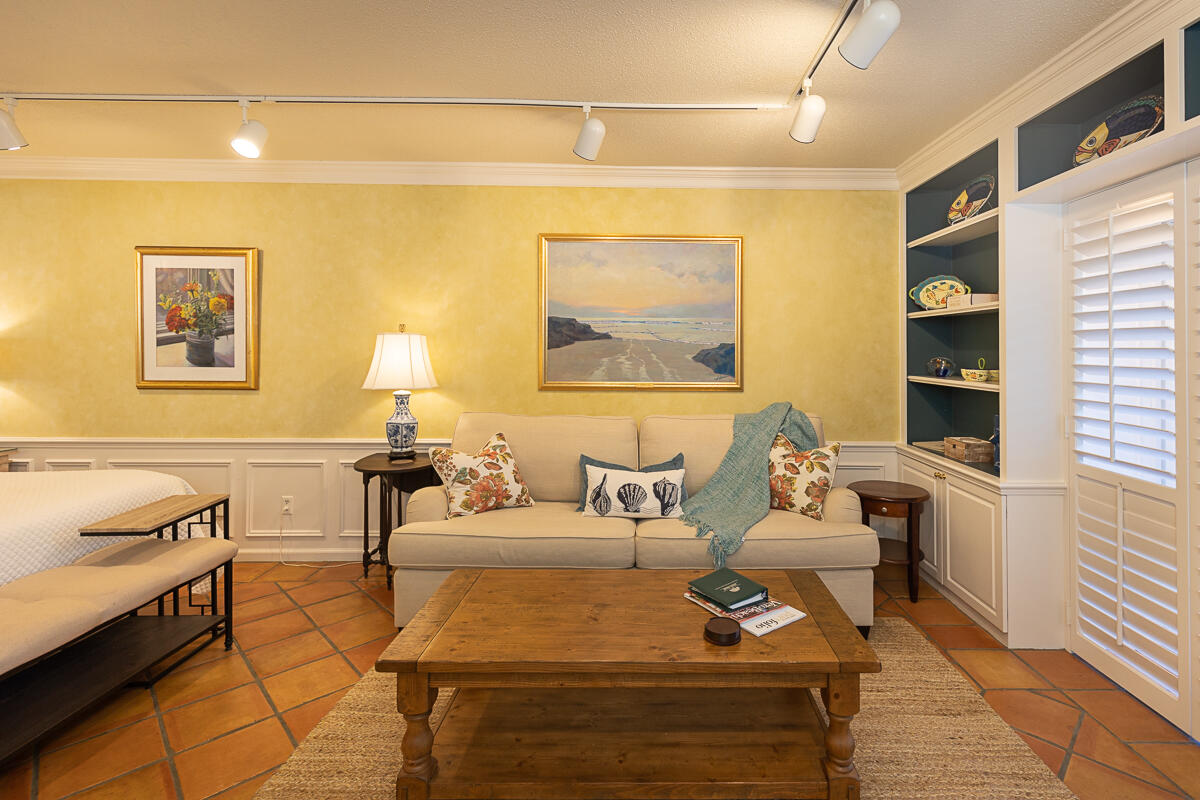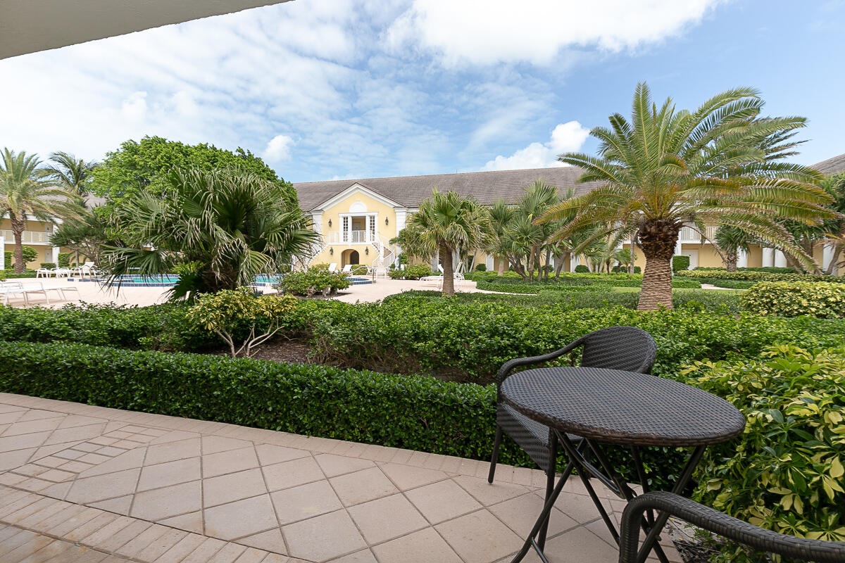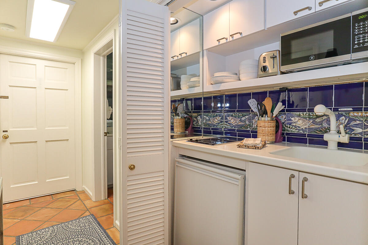 Conveniently located next to the Beach Club is this exquisitely renovated, fully furnished, 1BR/1BA studio efficiency. Enjoy gentle ocean breezes from the covered terrace overlooking the tropically landscaped courtyard pool. Boasting Approx. 590 square feet, features include custom built-ins and millwork, top-of-the-line kitchenette and bathroom, plantation shutters, large storage closet, washer/dryer and private beach access. (Renter note: Sleeper sofa-bed / NO SMOKING)