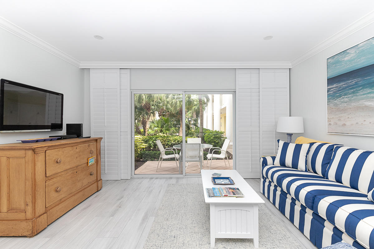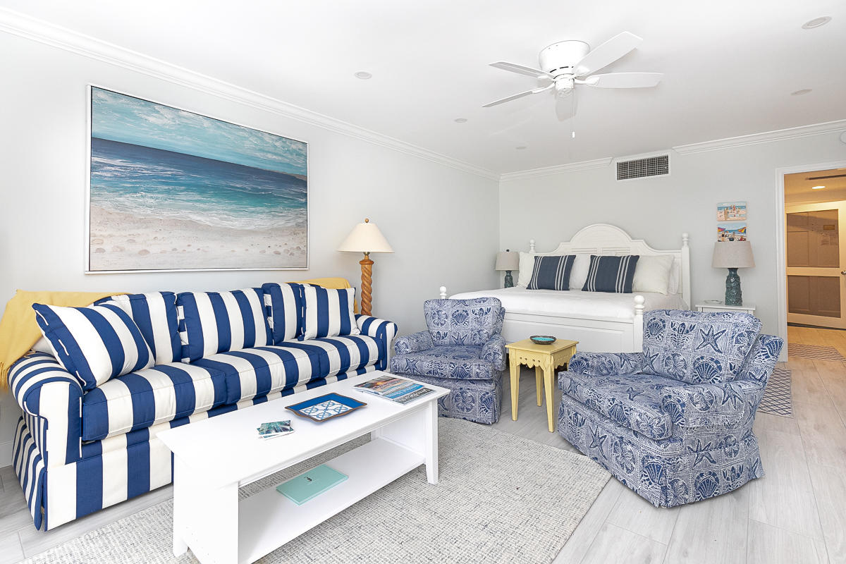 Conveniently located next to the Beach Club and all club amenities is this beautifully renovated 1BR/1BA studio efficiency. Enjoy relaxing trade-winds and blue skies from the private terrace overlooking the gorgeous, tropically landscaped courtyard pool. Boasting approx. 590 square feet, features include a kitchenette, full bathroom and large storage closet with washer/dryer. A private pool and beach access complete the picture. Rental note: sleeper sofa