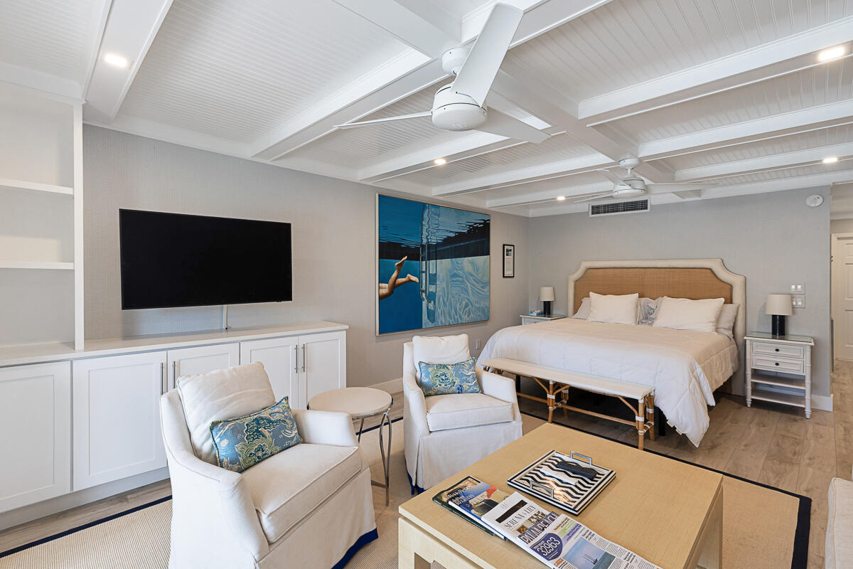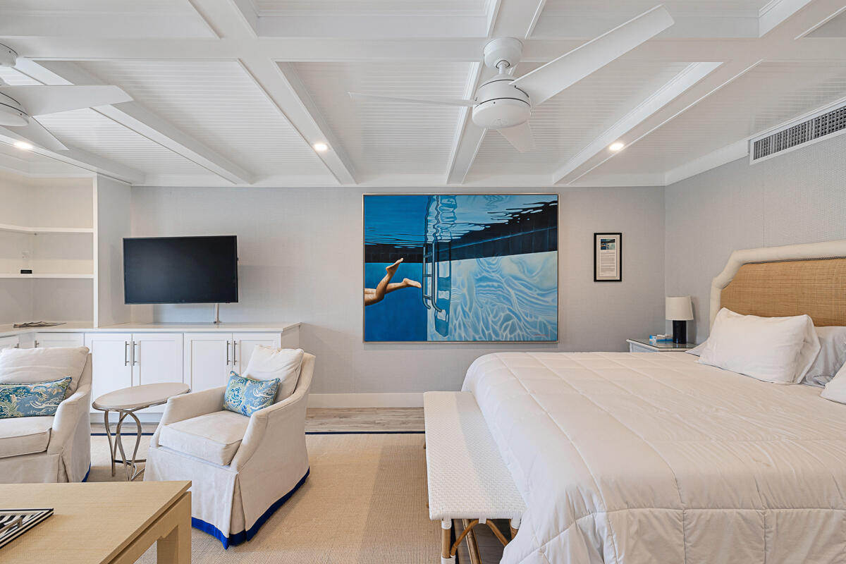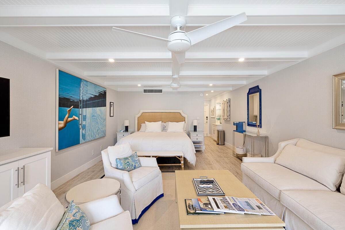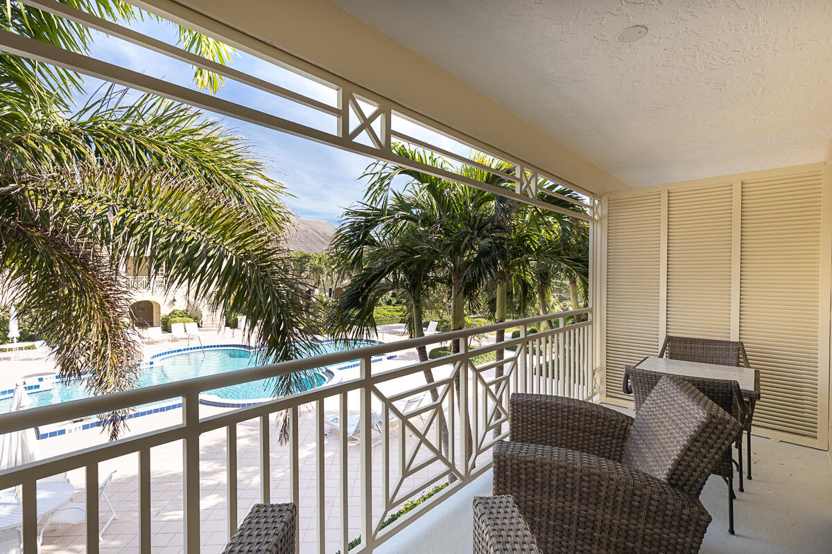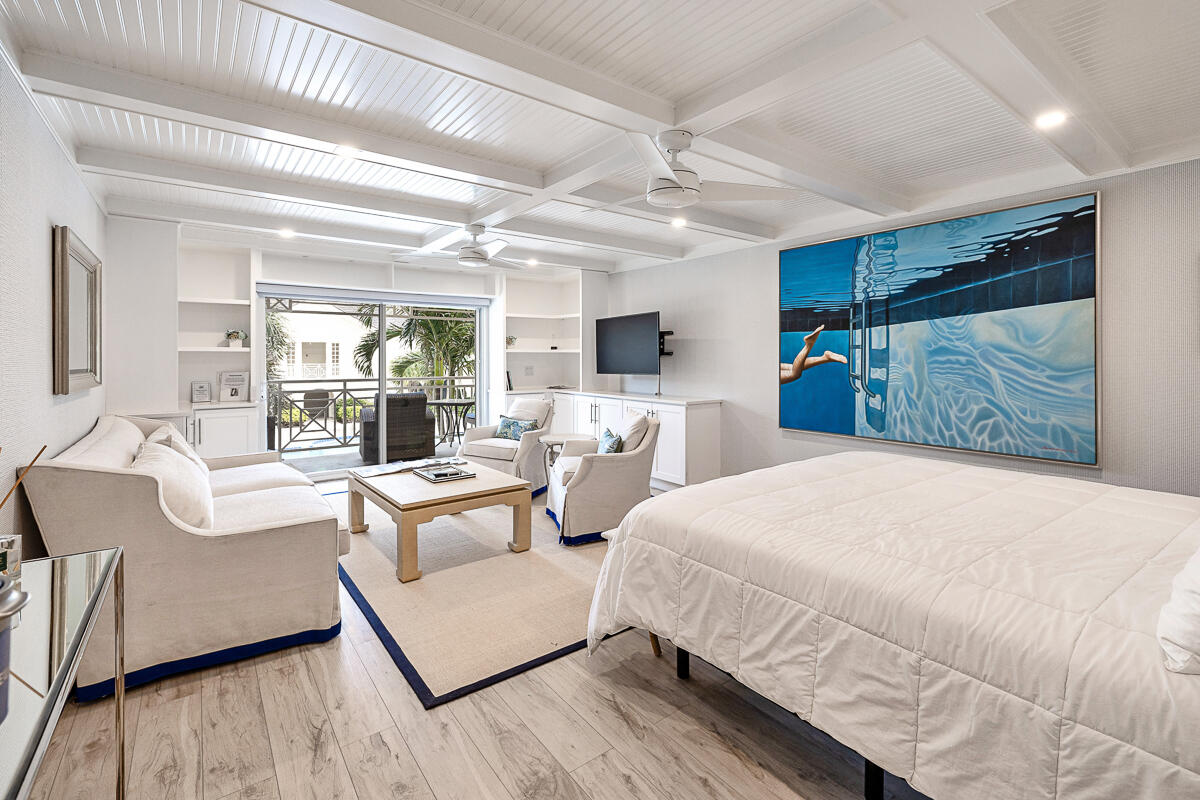 Overlooking the tropical courtyard pool, this gorgeously renovated 1BR/1BA residence features an inviting and on-trend interior design and a covered balcony that capitalizes on tropical breezes. Located on the second floor, the studio hosts an ample 590� SF, where sought-after features include a custom built-in cabinetry, tongue-and-groove ceiling accents, a spacious bathroom with dual vanities, luxe finishes, an ample kitchenette, with added top-tier appliances, and walk-in closet with washer/dryer. Moments from the sea and neighboring Beach Club, this residence is an engaging offering with prime location.