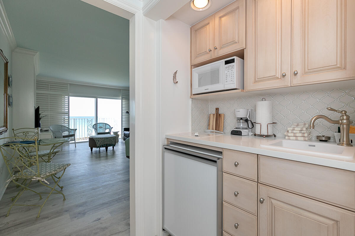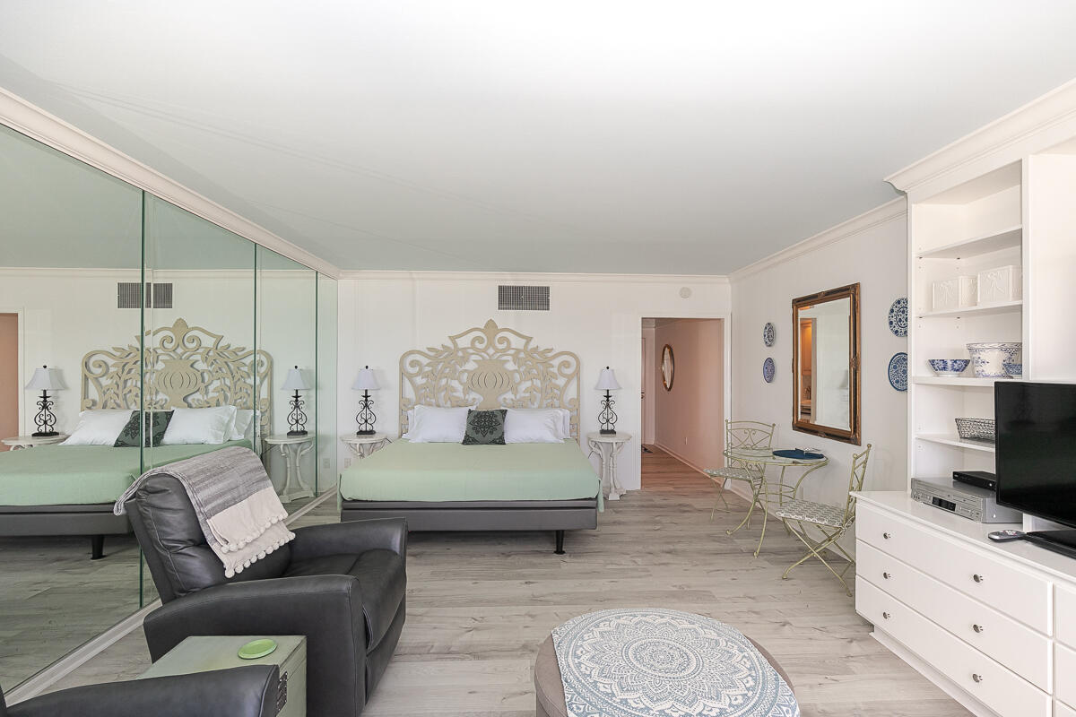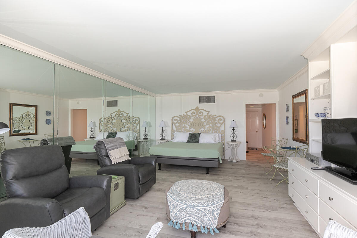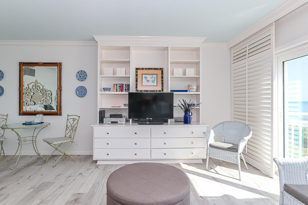 Ideally located next to the Beach Club, this beautifully furnished, 1BR/1BA oceanfront efficiency enjoys spectacular ocean views and private beach access. Features include approx. 590 SF, oceanfront opera balcony, built-ins, plantation shutters, updated kitchenette and bathroom, and a tropical courtyard pool. (Association Coin Operated Laundry Facility available on site)