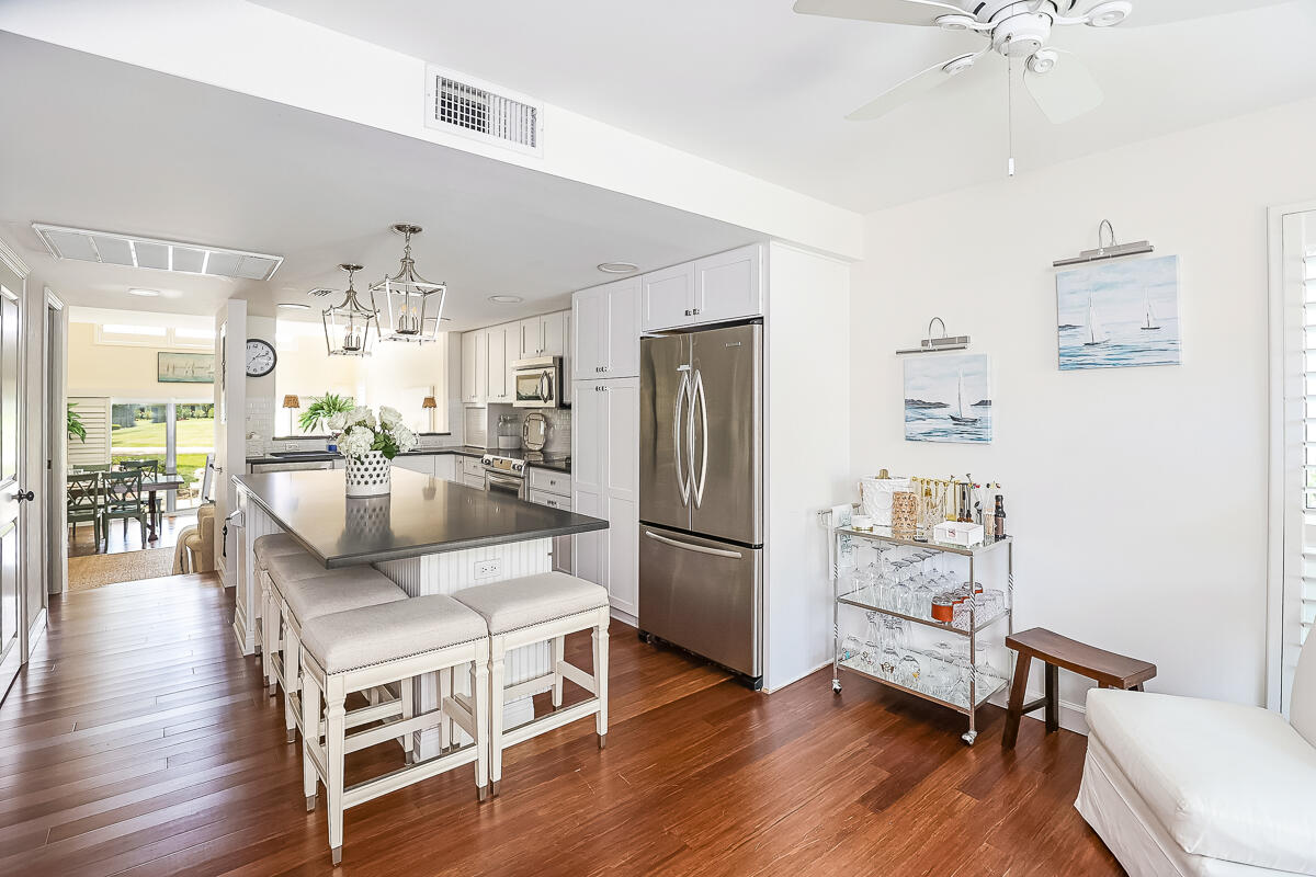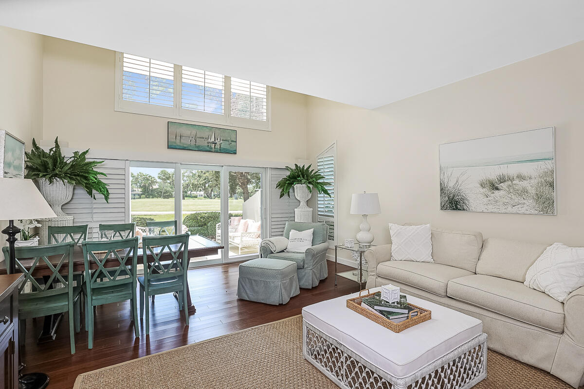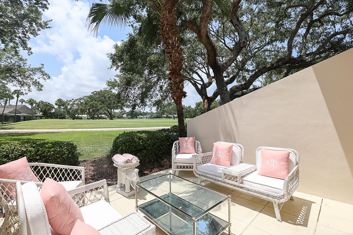 Located in the private South Village among majestic oaks and lush tropical foliage is this impressive 2BR/2.5BA two-story townhouse. Offering fairway views of the newly renovated South Course, it is conveniently located near the south gate. The voluminous living room opens onto a relaxing private patio with desirable southern exposure. Additional features include 1,300 SF, a beautifully updated kitchen, cozy sitting/dining area with unique staircase tv inlay, second floor master suite with high ceilings and ample storage, guest suite, single-car garage and access to private tennis courts and a heated pool.