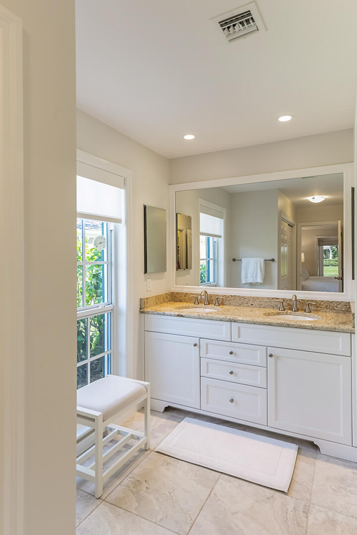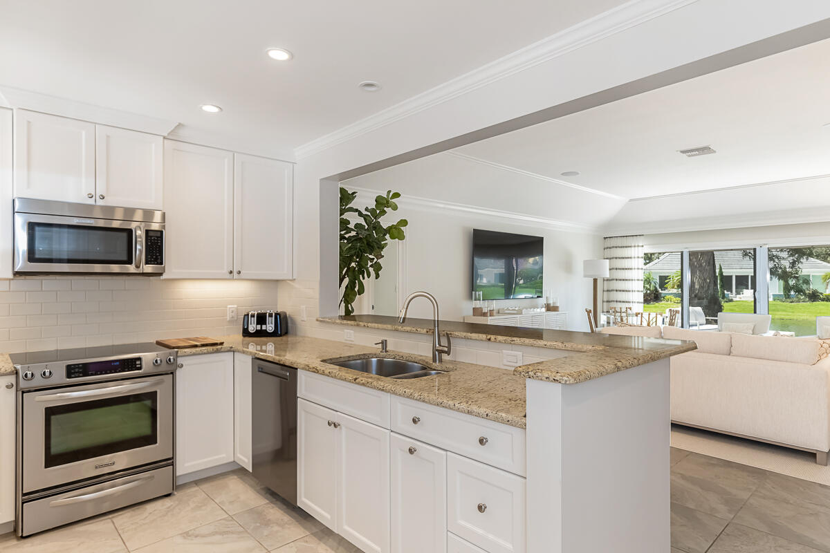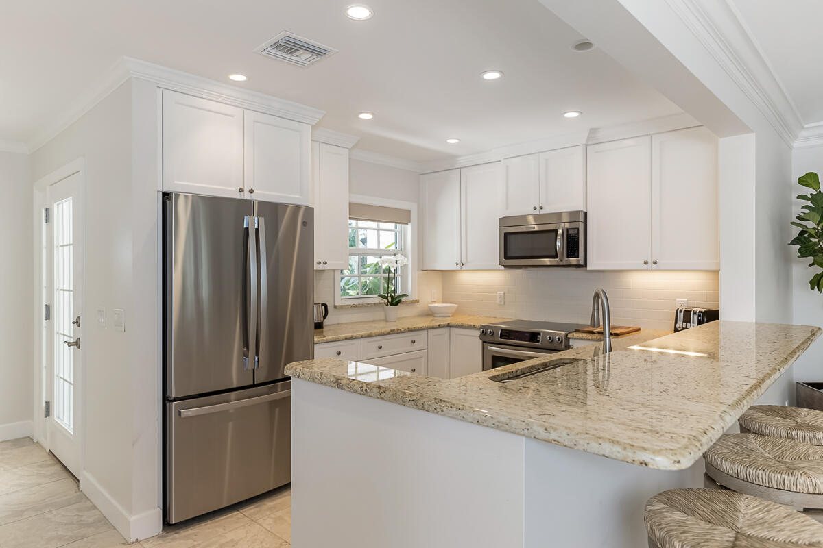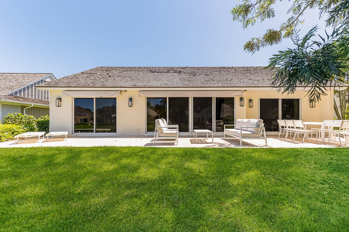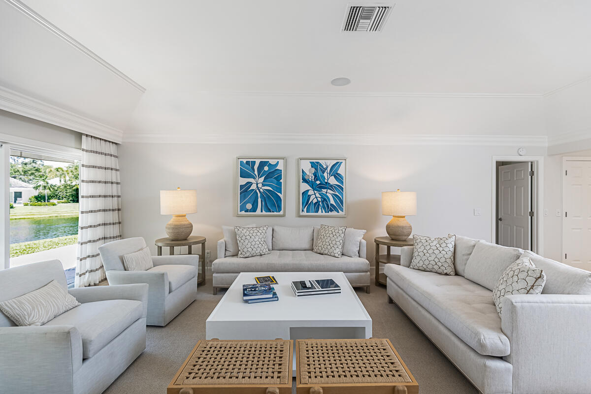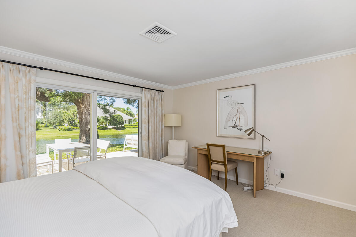 Surrounded by palms, mature oaks, and lush gardens is this beautifully updated 3BR/2BA South Village cottage located along a lake. Well-appointed and boasting an inviting and spacious interior, this residence capitalizes on serene water views and ample space. Relax on the outdoor patio overlooking the lake fountain, whether on the chaise loungers, or dine outside to enjoy the view. Similar highlights of this tranquil property include an expansive master suite with desk/reading nook, tray ceilings, and comfortable bathroom with walk-in shower, two guest suite - one with sliders that lead to an outdoor patio, additional 1-car garage, gourmet kitchen with bar seating, and welcoming living room. Nearly every room enjoys enticing vistas of South Village lake. Located near the south gate, it is just a short walk to the private South Village tennis courts and swimming pool.