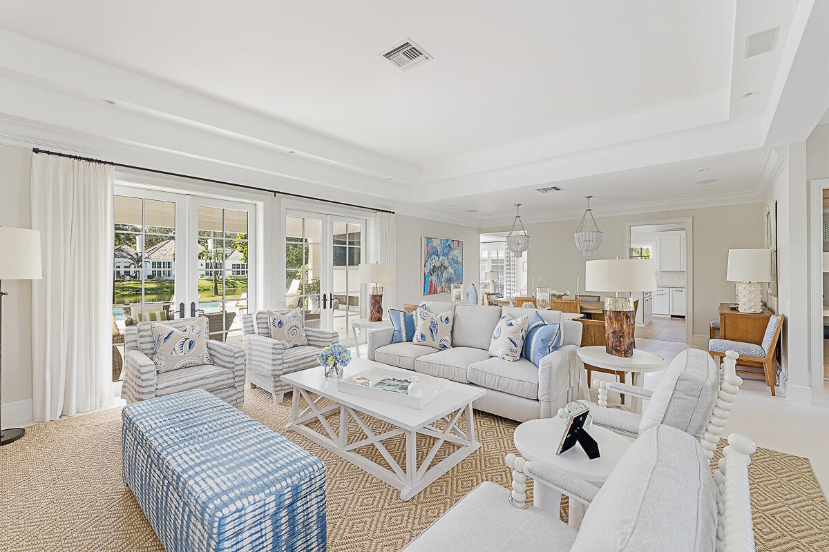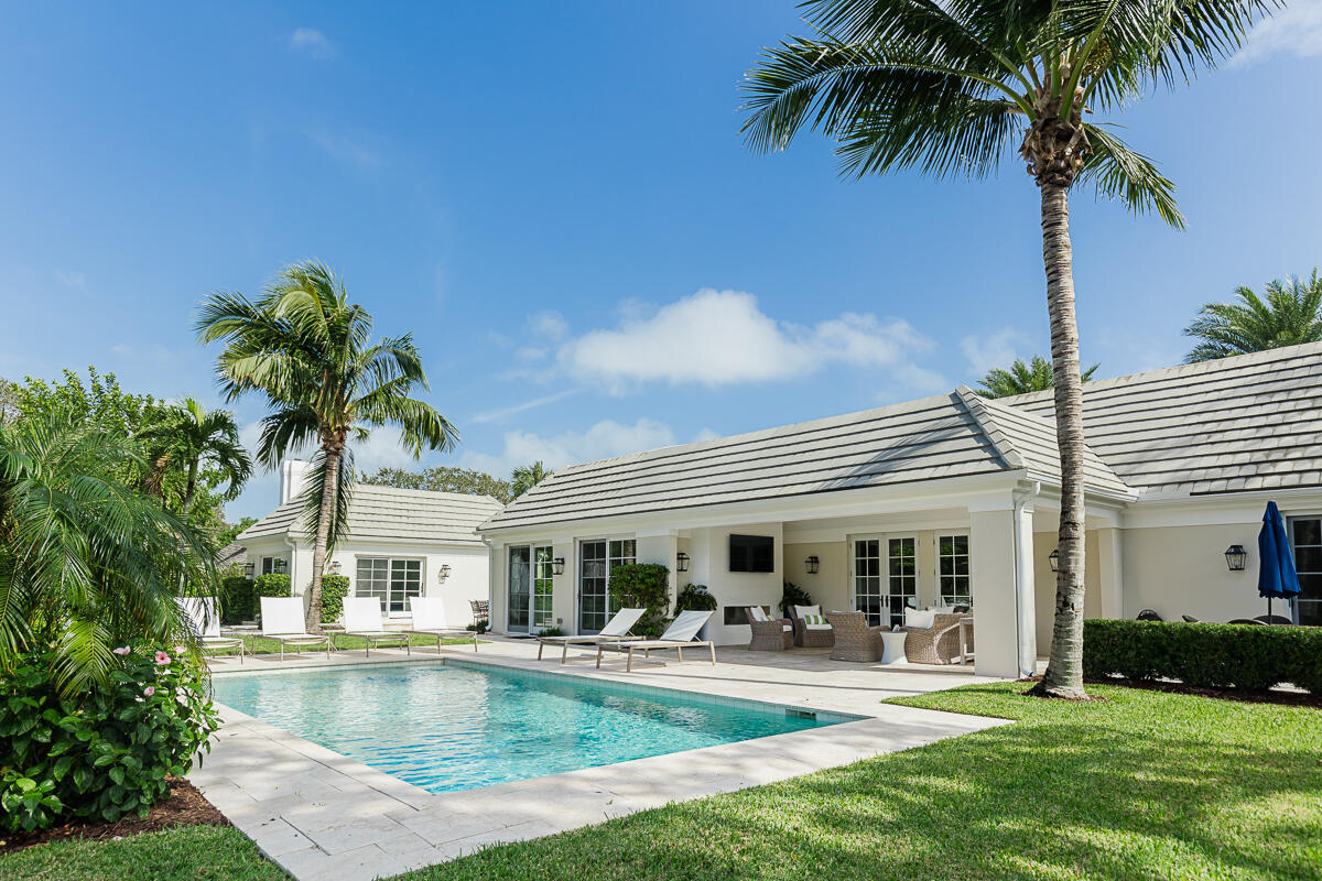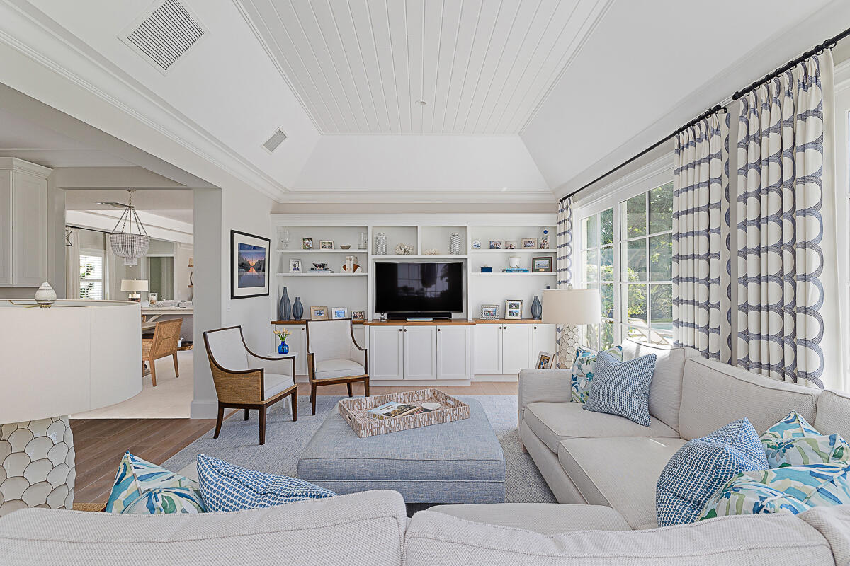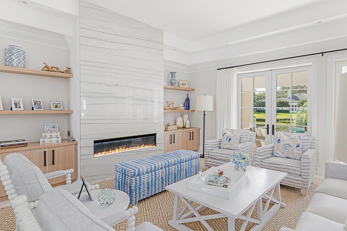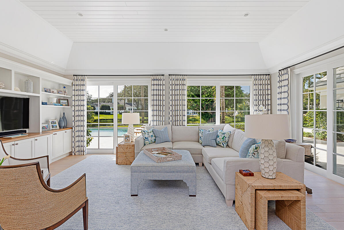 Gorgeously appointed with coastal chic interiors, this spacious and comfortable 4BR/5.5BA lakefront retreat is perched along Indian Lake and exudes serenity. Lush, well-manicured landscaping accents the sprawling .57± acre property, where it feels private and capitalizes on excellent indoor/outdoor living. Crystal blue pool and lake views take centerstage, with a covered veranda with fireplace and plenty of exterior terraces to entertain. The main house features an inviting living room with soaring ceilings, dining area, custom millwork, and a stunning fireplace that anchors the space. A gourmet island kitchen enjoys warm ambient light and plenty of space, and adjoins a comfortable family room with built-ins and lake views. A detached guest cabana suite complete with kitchenette provides a wonderful spot for friends and family alike. At a gracious 4,415± GSF along a serene stretch of a private lake, this striking home is an exciting offering on Indian Harbor.