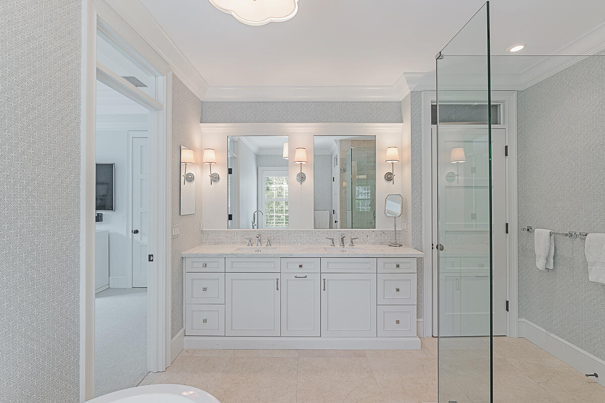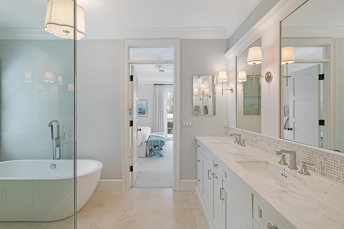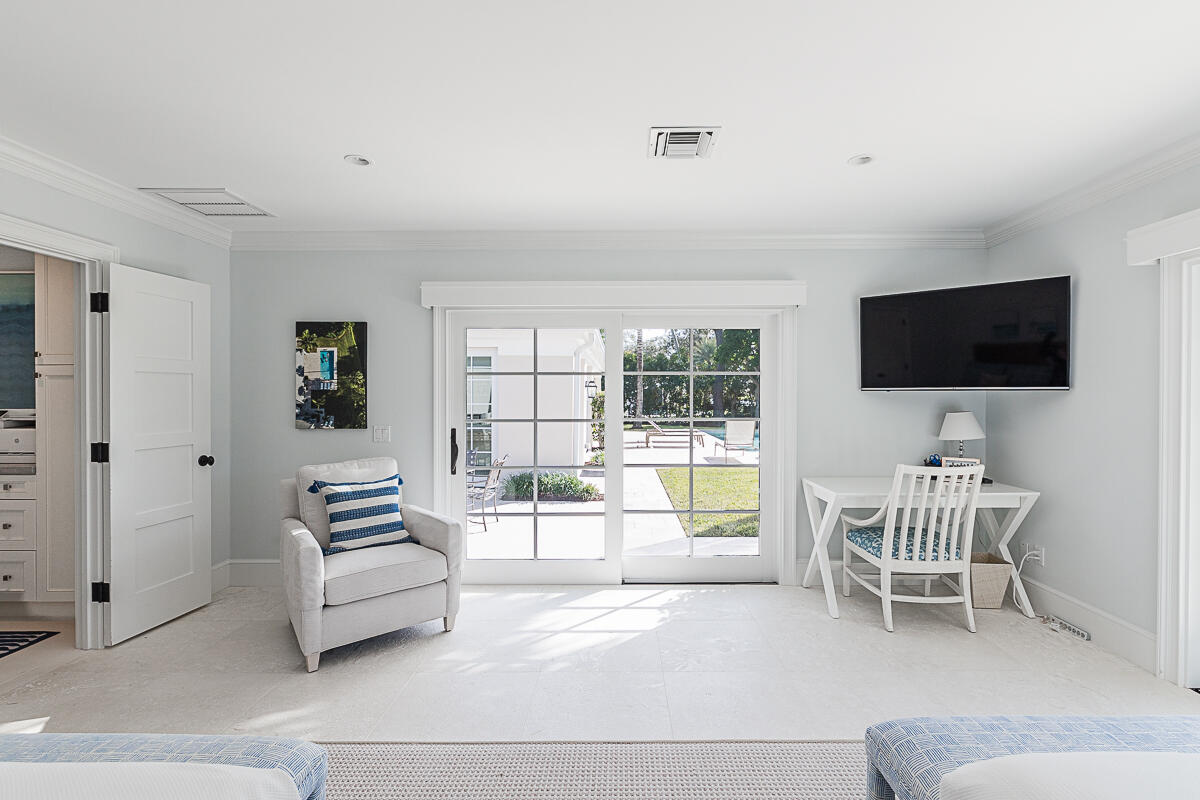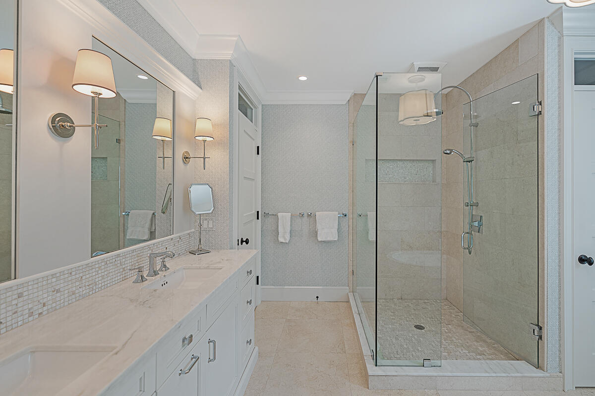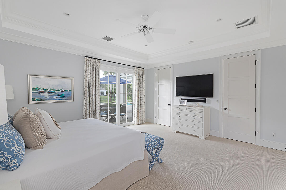 Gorgeously appointed with coastal chic interiors, this spacious and comfortable 4BR/5.5BA lakefront retreat is perched along Indian Lake and exudes serenity. Lush, well-manicured landscaping accents the sprawling .57± acre property, where it feels private and capitalizes on excellent indoor/outdoor living. Crystal blue pool and lake views take centerstage, with a covered veranda with fireplace and plenty of exterior terraces to entertain. The main house features an inviting living room with soaring ceilings, dining area, custom millwork, and a stunning fireplace that anchors the space. A gourmet island kitchen enjoys warm ambient light and plenty of space, and adjoins a comfortable family room with built-ins and lake views. A detached guest cabana suite complete with kitchenette provides a wonderful spot for friends and family alike. At a gracious 4,415± GSF along a serene stretch of a private lake, this striking home is an exciting offering on Indian Harbor.