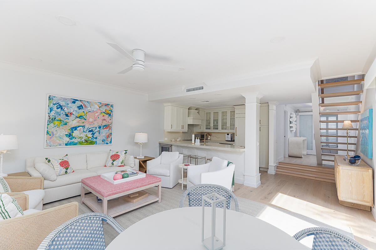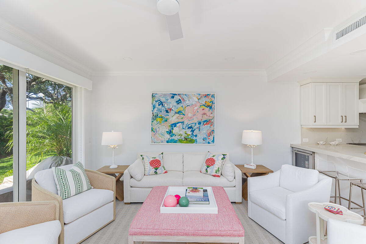 This beautifully appointed 2BR/2BA end-unit townhouse with northern exposure overlooks the lush tropically landscaped pool. Located within the private community of North Village, this residence boasts 1,500 square feet, a generous living room, an ample kitchen that overlooks the living area, a dining space, and lush landscaping. Upstairs, a master suite with vaulted ceiling is peaceful and spacious, with balcony overlooking the views - as well as an updated bathroom with dual vanities and walk-in shower. Rounding out perfection, the North Village offers access to private tennis courts, pickle-ball, a grilling area and a heated pool.