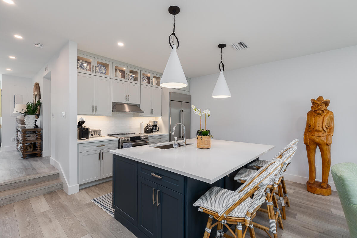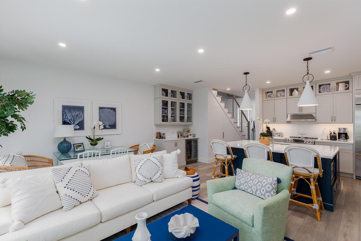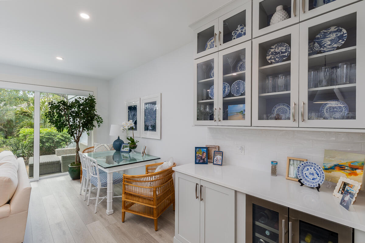 Nestled in the quiet North Village, this dazzling 2BR/2BA townhouse has been updated to capitalize on open living space and tranquil appeal. The residence boasts 1,500ï SF that has been redesigned to accommodate top-tier accents and fine finishes. An expanded eat-in island kitchen gives way to a voluminous living room and built-in dry bar with beverage center. Enjoy quiet shaded time outside on the terrace, or enjoy pool views from the second-level master suite balcony. The first floor also includes an office nook, bright guest bedroom and bathroom. Upstairs, the roomy master bedroom features vaulted ceilings, a custom desk, and dual vanity bathroom with soaking tub and frameless glass shower. Rounding out perfection, the North Village offers access to private tennis courts, pickle-ball, a grilling area and a heated pool.