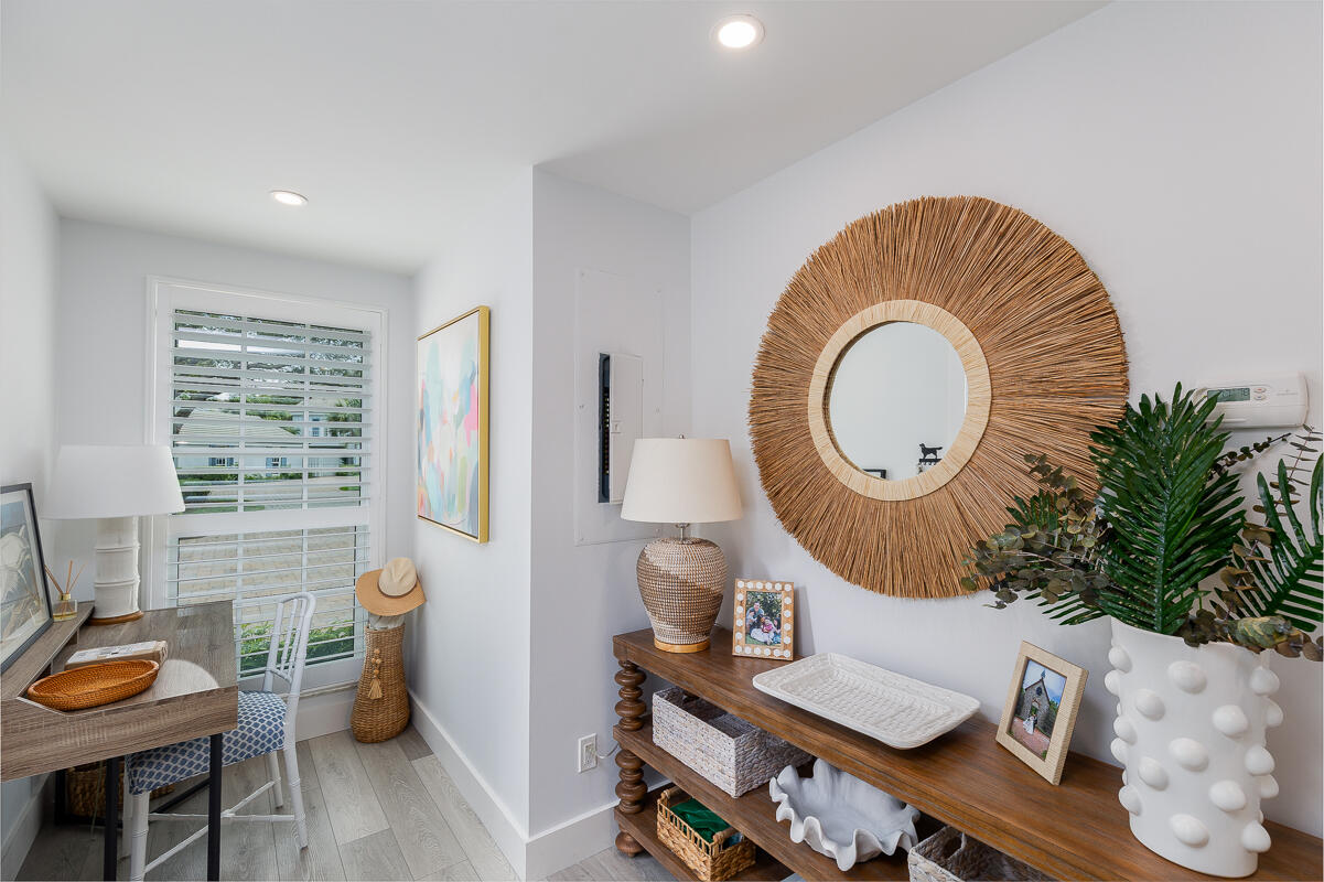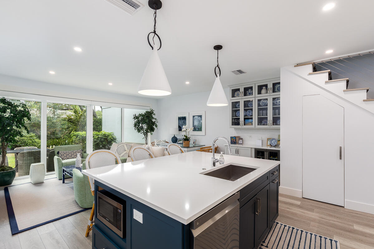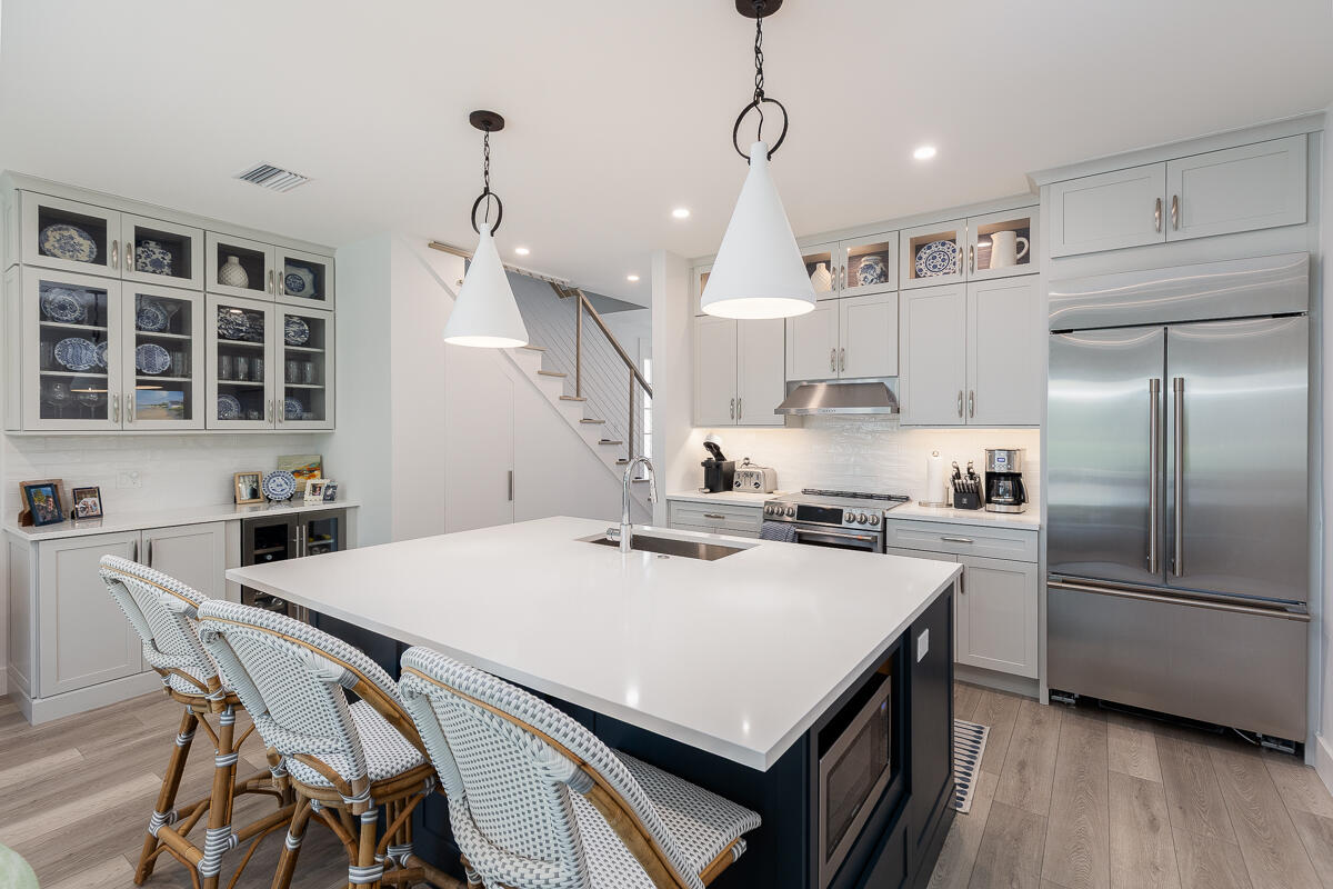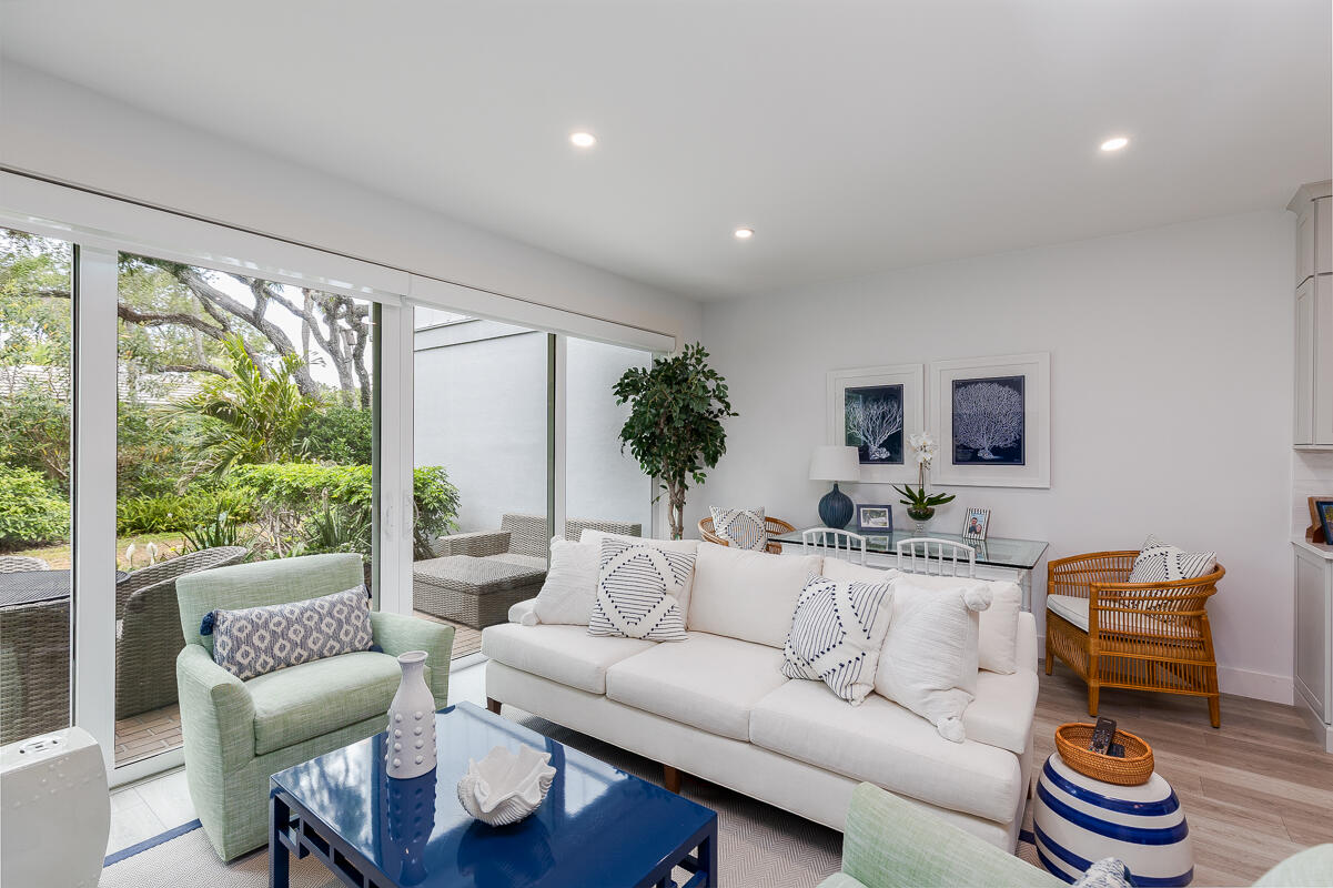 Nestled in the quiet North Village, this dazzling 2BR/2BA townhouse has been updated to capitalize on open living space and tranquil appeal. The residence boasts 1,500ï SF that has been redesigned to accommodate top-tier accents and fine finishes. An expanded eat-in island kitchen gives way to a voluminous living room and built-in dry bar with beverage center. Enjoy quiet shaded time outside on the terrace, or enjoy pool views from the second-level master suite balcony. The first floor also includes an office nook, bright guest bedroom and bathroom. Upstairs, the roomy master bedroom features vaulted ceilings, a custom desk, and dual vanity bathroom with soaking tub and frameless glass shower. Rounding out perfection, the North Village offers access to private tennis courts, pickle-ball, a grilling area and a heated pool.