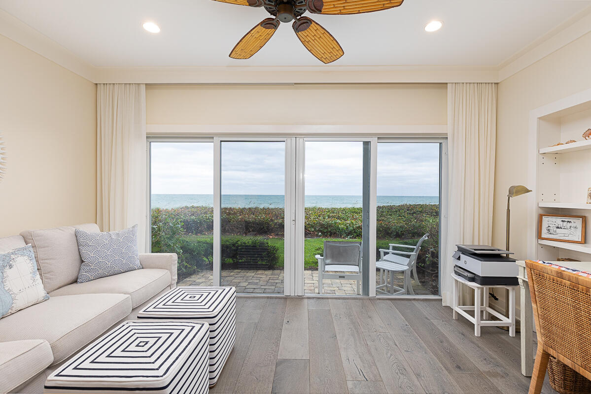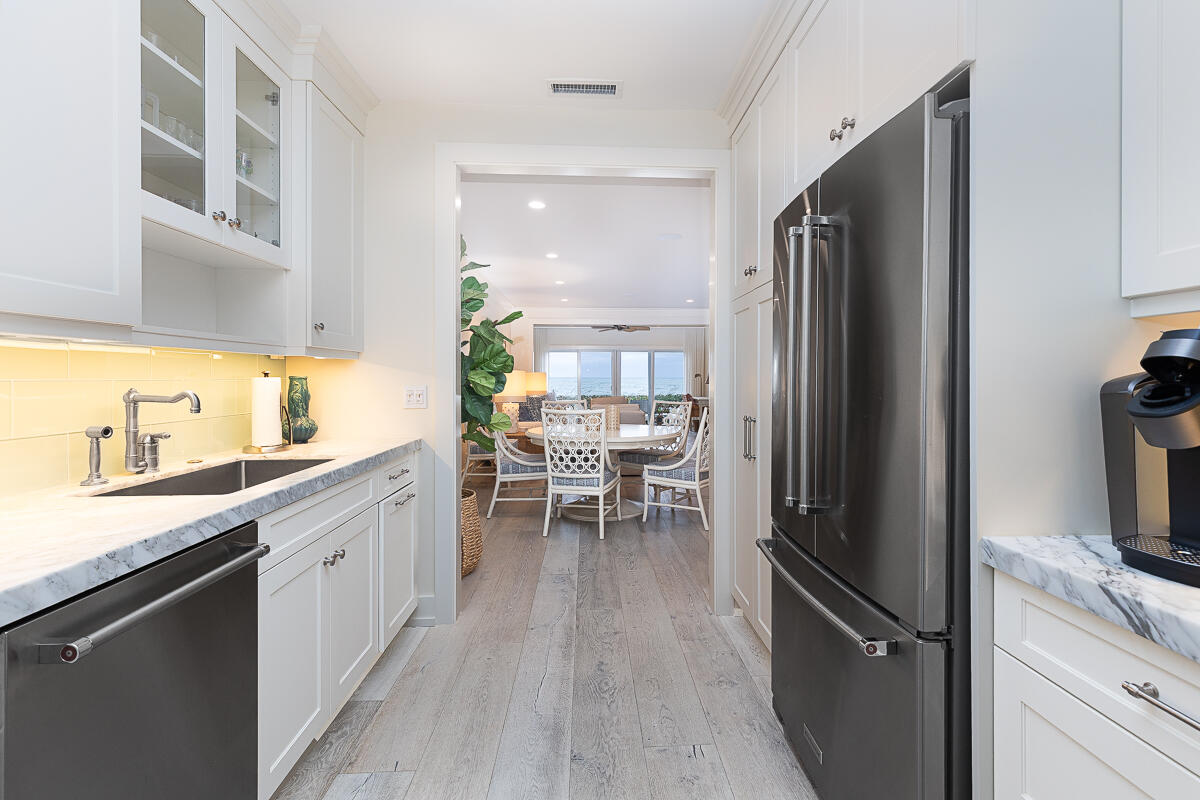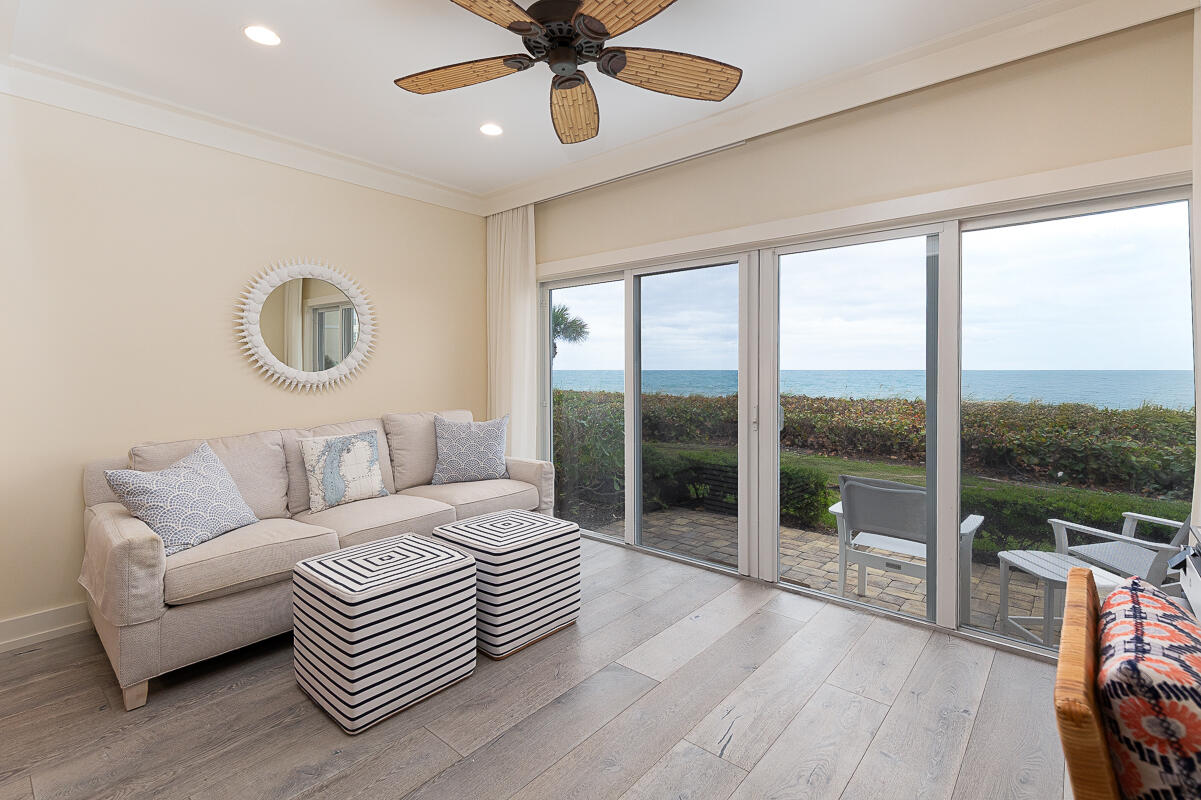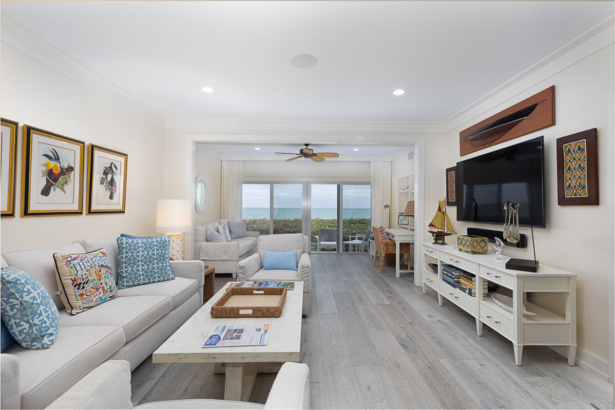 Updated with fresh, breezy appeal, this gorgeous 2BR/2BA oceanfront condominium proves a welcoming respite from life’s demands. Enjoy breathtaking, panoramic ocean views from this desirable 1,520+ SF retreat conveniently located within a short walk to the Beach Club. Wide plank hardwood floors complement the expansive living room with dining area and bar with wine cooler and storage. The gourmet kitchen with honed Italian marble accents is a wonderful place to prepare meals while enjoying the sunset. Take in the relaxed beachfront vibe from the enclosed lanai that opens onto an outdoor patio. Custom millwork, luxurious seaside primary suite, a guest suite with coffered ceilings, bright bathrooms with walk-in showers, and spacious closets complete the interior assets.